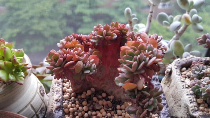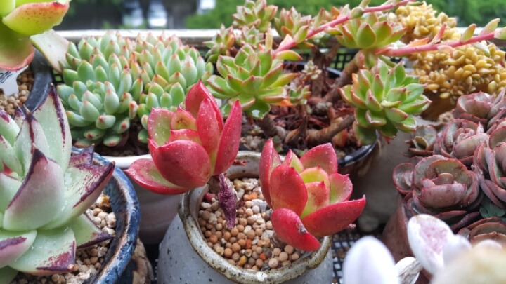 방울복랑 직광 약한줄알고 실내서만 키우다 자줏빛이 안보여 밖으로 꺼냈더니 이제서야~~