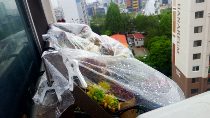 여름 장마때도 이렇게 대충 비 피하며 키워요~