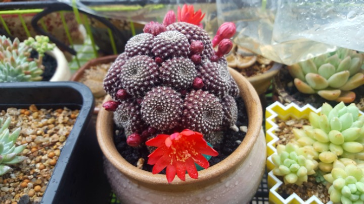레드파이가 드디어 꽃망울을 터트렸어요.