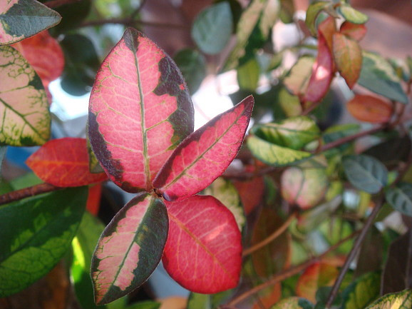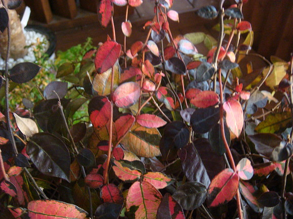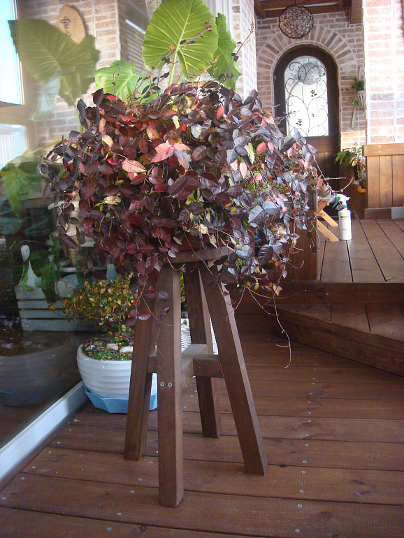 검게 보이는 잎사구는 넘물이들어 진한 팥죽색