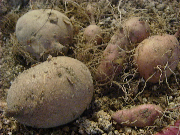 못쓰는 플라스틱대야에 무른고구마를 통채로 심었답니다