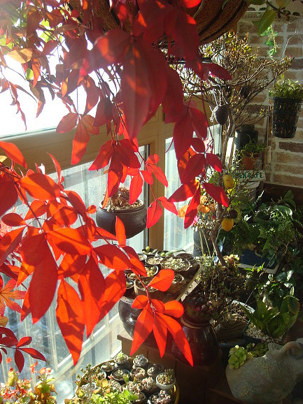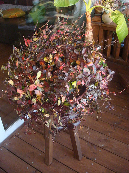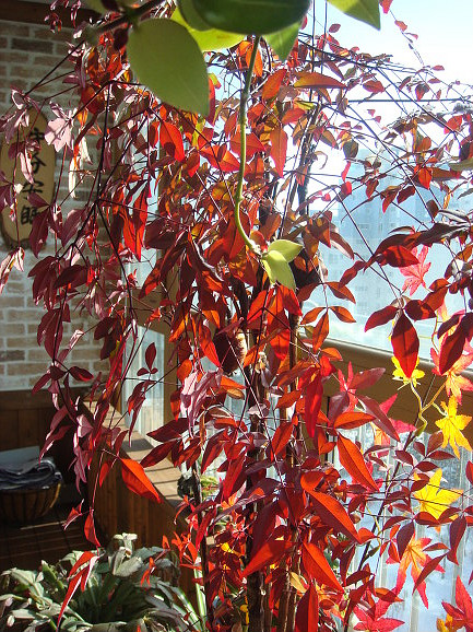울집 베란다 테크에는 남천꽃물이 들어 보는사람의 눈을 즐겁게 해주지요