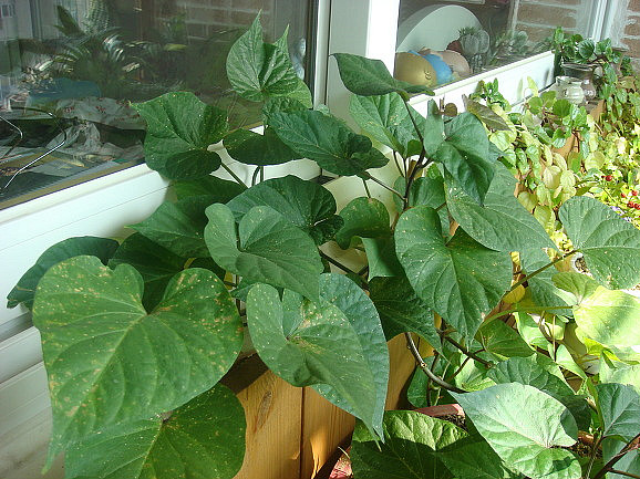 고구마옆으로 세력을 넓히고 고구마도 점점 자라 창문을 덟을듯