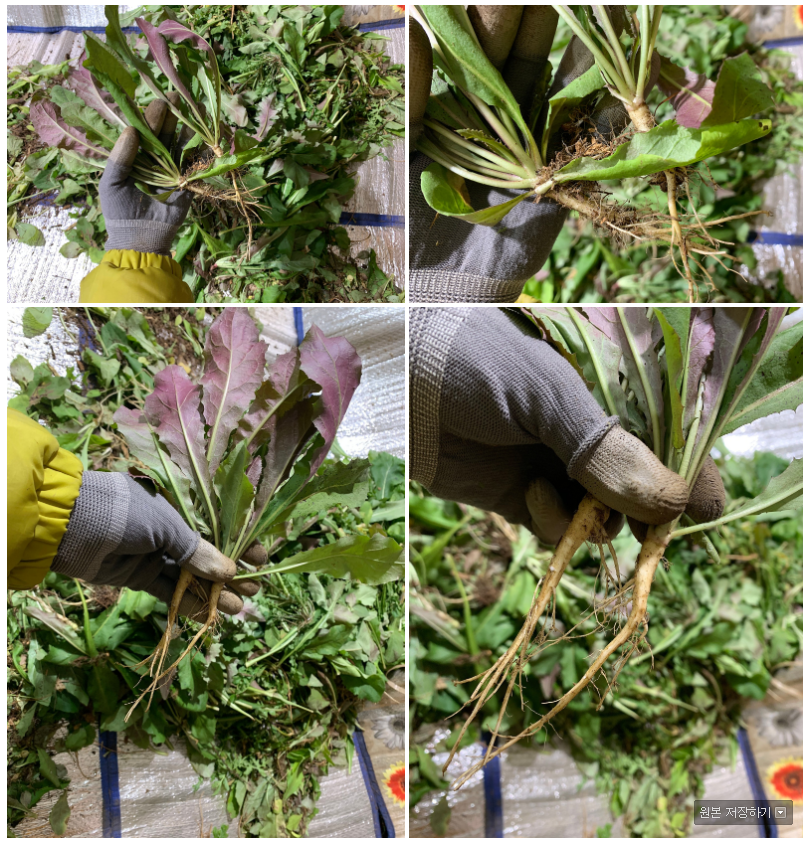 약간 푸른빛이 도는 고들빼기와 초록빛만 도는 고들빼기