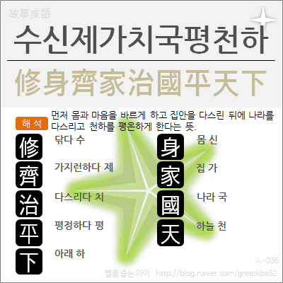 그래서 수신제가(修身齊家)치국평천하(治國平天下)라 했어요