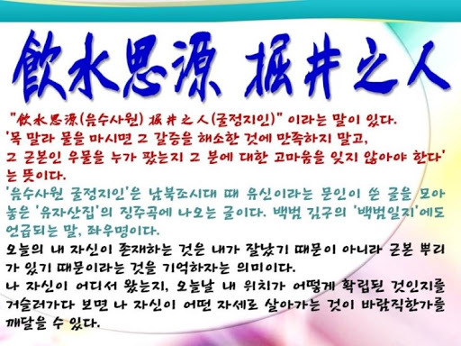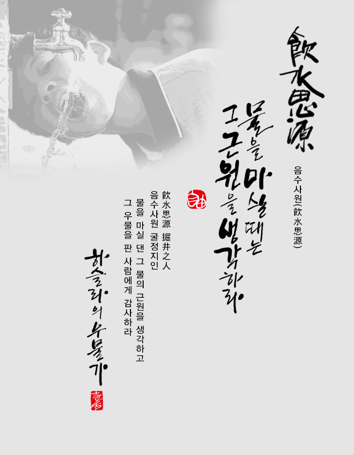 옛 고서에 "음수사원(飮水思源) 굴정지인(掘井之人)" 이라는 말이 있어요