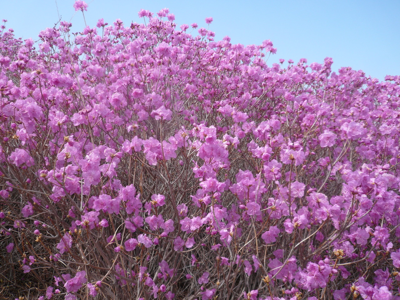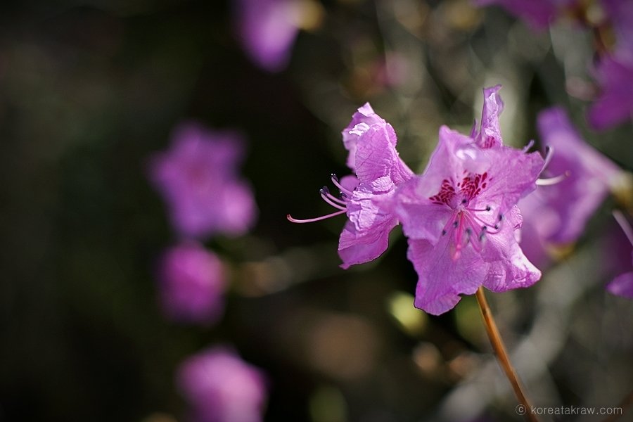 진달래는 잎이 나기 전인 4월초부터 4월말까지 전국의 산과 들에 꽃을 피우는데