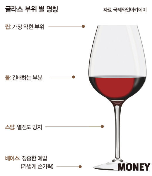 ▲ 와인잔의 부분 명칭도 알아두시면 좋아요