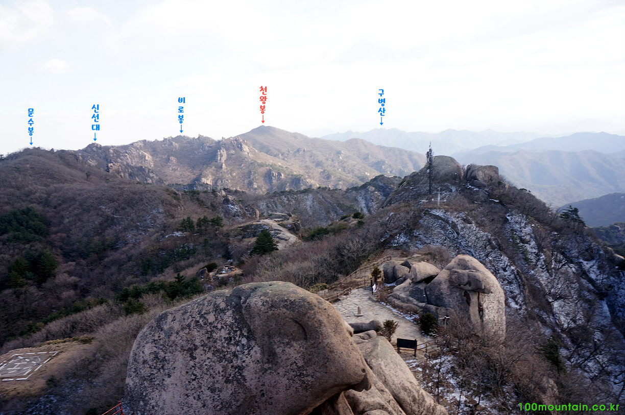 문장대 이정표에는 다음과 같이 안내하고 있어요