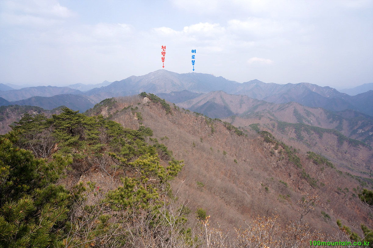 ▲ 형제봉에서 바라본 속리산 천왕봉과 비로봉