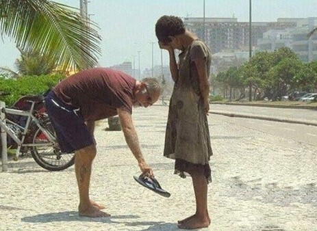 자신의 신발을 벗어 어린 소녀에게 주는 할아버지의 배려 ...