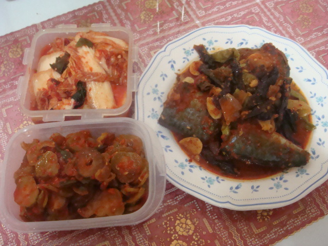 후후후후~~~오늘저녁 울집 저녁밥상 이예요 달랑 세가지 놓구요~~김치~ 오이지 ~고등어찜~~~~