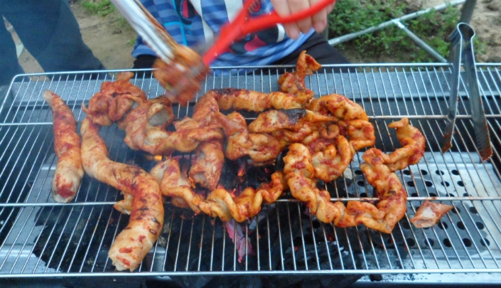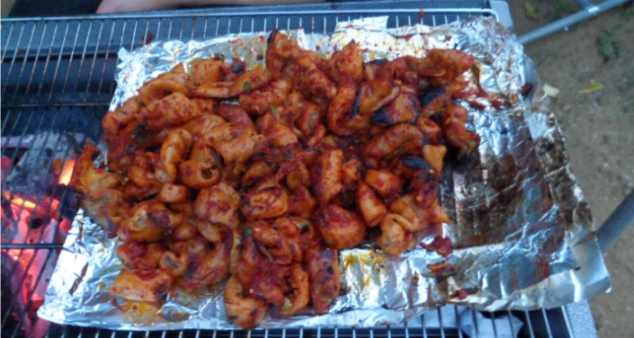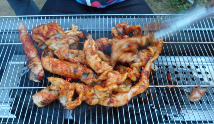 지난번에 만들어놓은 소스를 발라가며 타지 않게 잘 굽습니다..