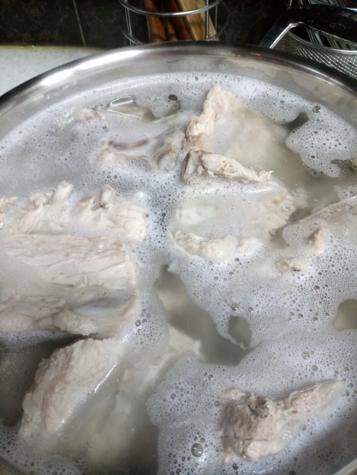 금요일 마다 직장근처에 나가 있던 아들이 돌아 와서 울식구 4명이 합체합니다^^ 저번주는 감자탕을 했으므로 이번주는 국물있는 매운 등뼈찜요리입니다. 재료는 싸지만 시간과 정성을 요하는 요리라서 울 식구 모두 좋아합니다. 남은 국물은 울 딸이 당면을 넣어서 잘먹기 때문에 버릴 것이 없어요^^ 등뼈를 향신료를 넣고 15분을 삶아내고 냄비에 뼈를 1시간 정도 더 삶아요. 그다음에 양념을 넣고 조금 더 끓이면 됩니다^^ 울 남편 요리로는 펀치볼시래기(울남편이 엄청나게 좋아해요. 이 시기에 많이 드세요) 된장 조림을 합니다^^