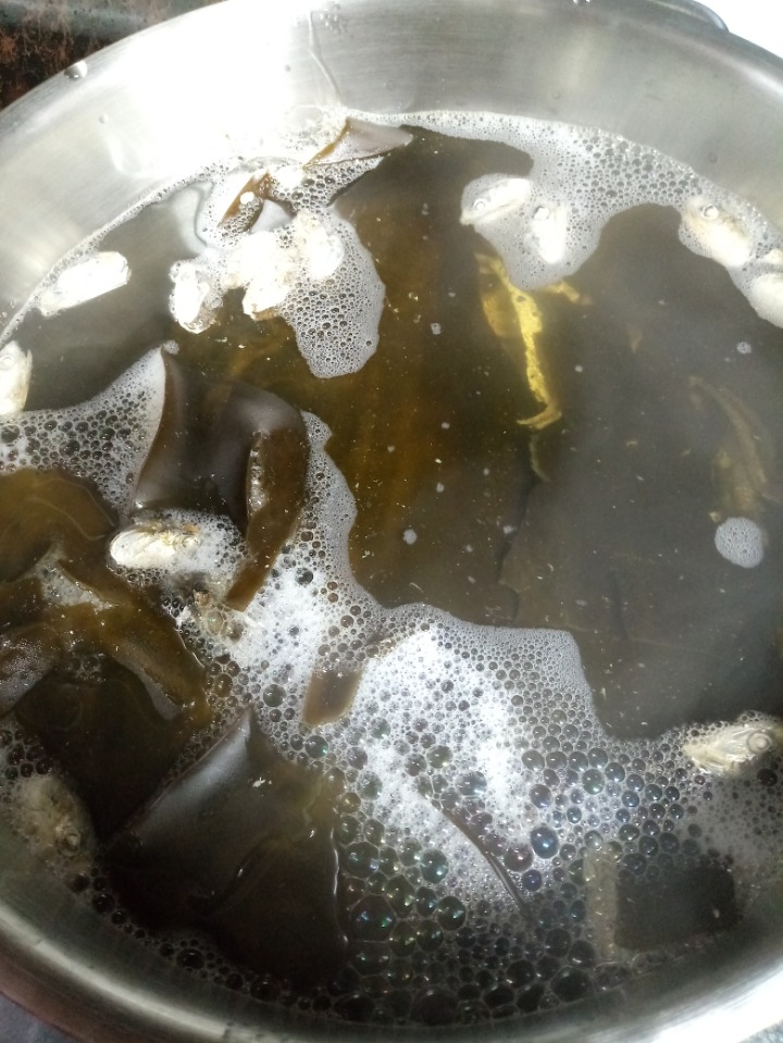 똥제거한 멸치와 다시마로 내는 육수입니다. 그 다음은 된장을 넣어서 푹 끓이면 됩니다.
