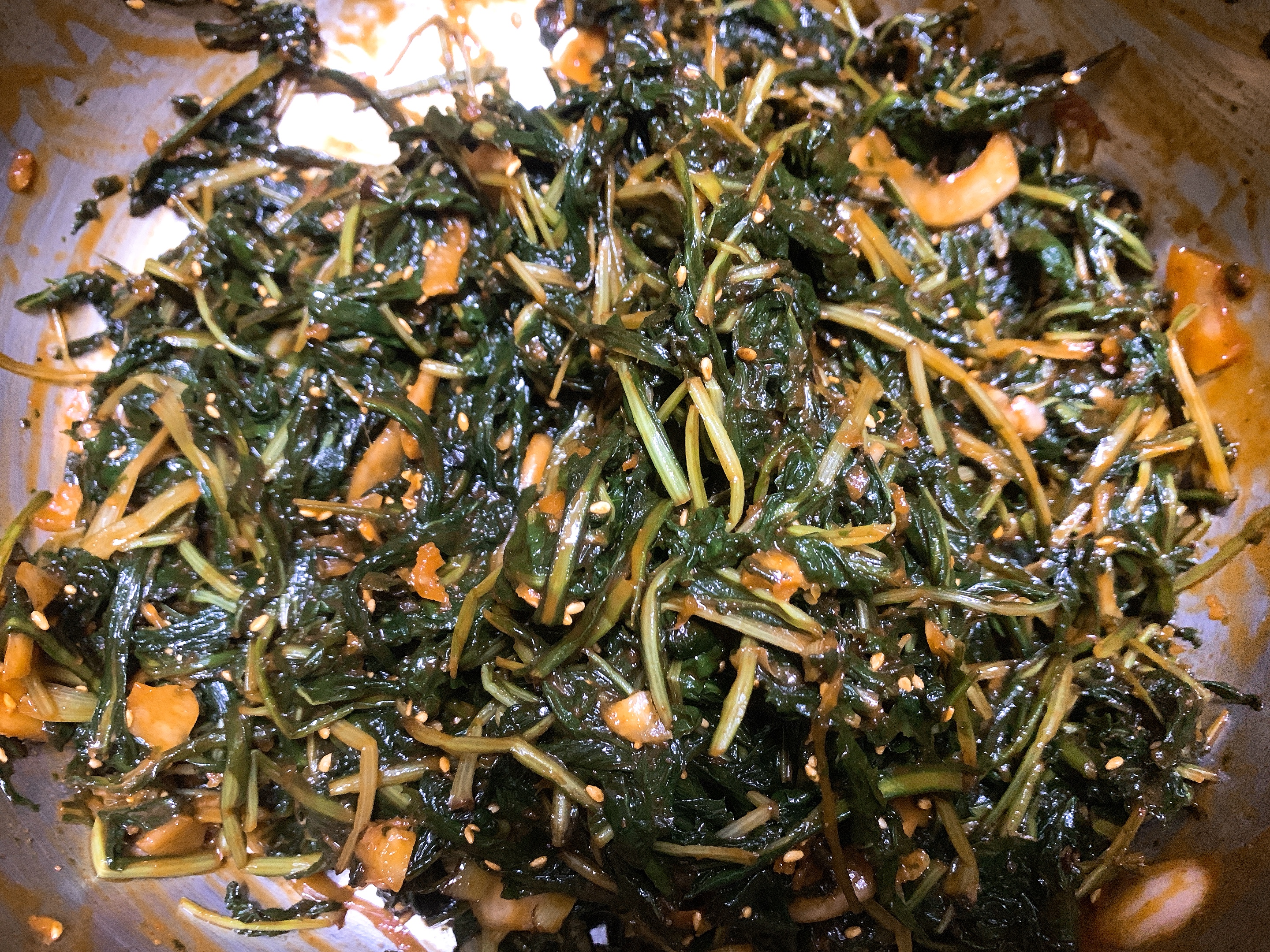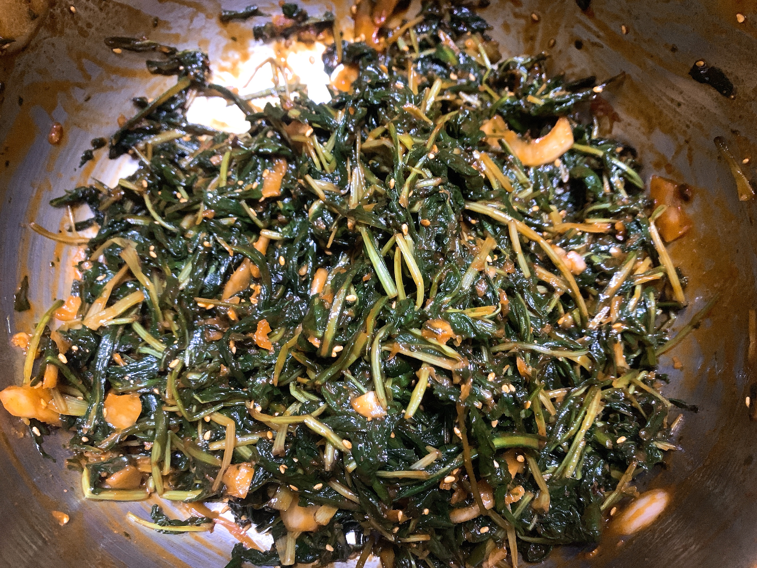 요리당, 들기름, 깨를 넣고 2차로 양념을 버무려줍니다.