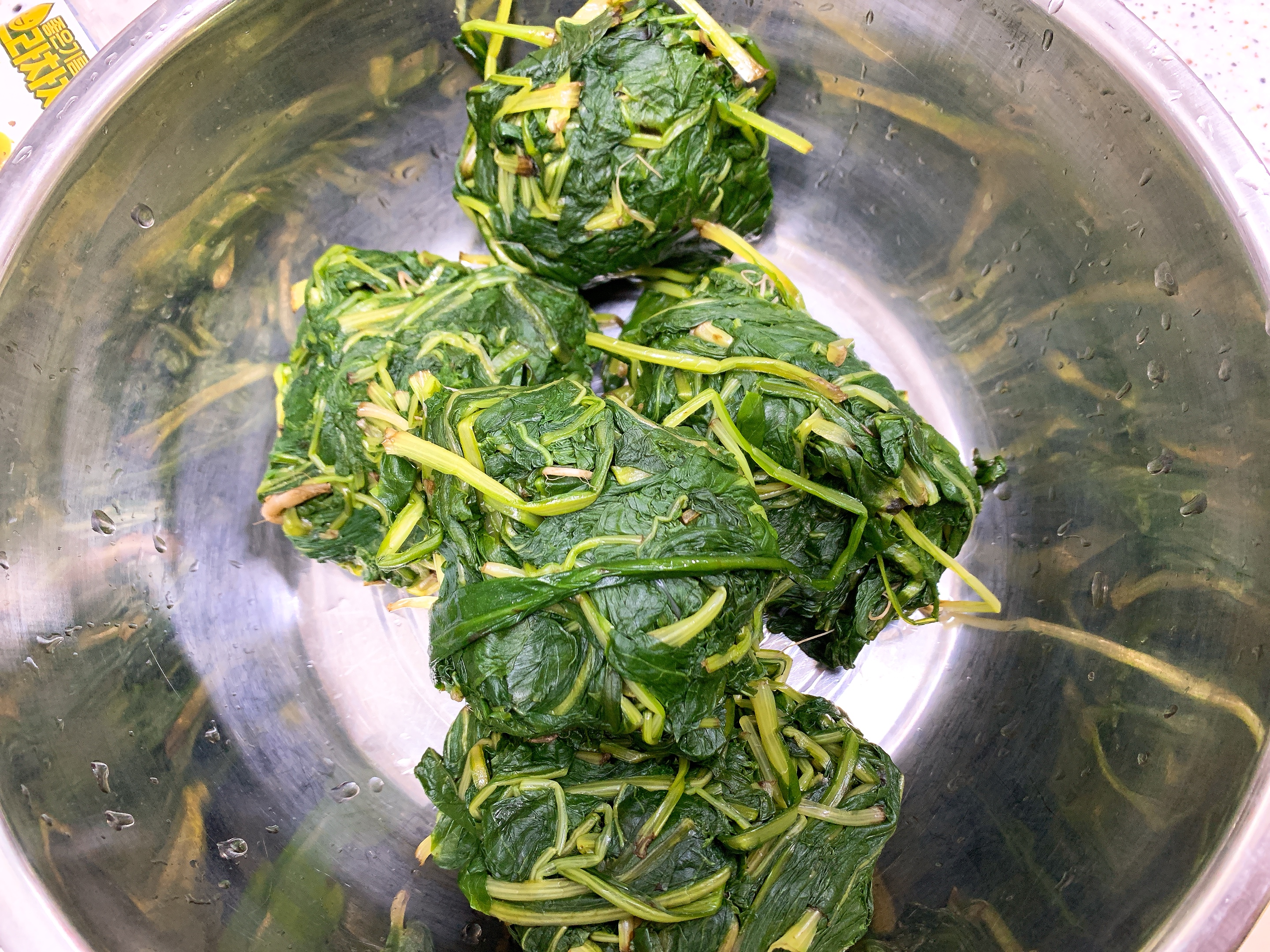 여러번 헹군 고들빼기는 물기를 꼭 짜서 둡니다.