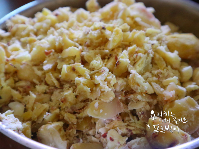 으개어 부드러운 밤가루를 만들어주어요