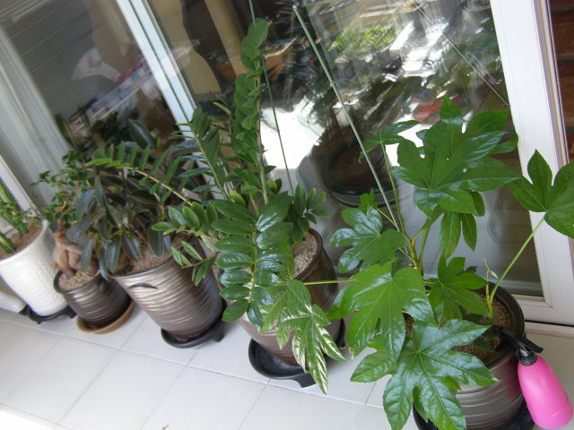 팔손이, 금전수(정말 잘 크네요.새순도 두개 나오고) 처음에 화초를 잘 모를때 물 자주 줬는데, 그래도 잘 컸는데 이건 물 자주 주는게 아니라고 하더라구요. ㅋㅋㅋ 요즘 아껴주고 있어요.