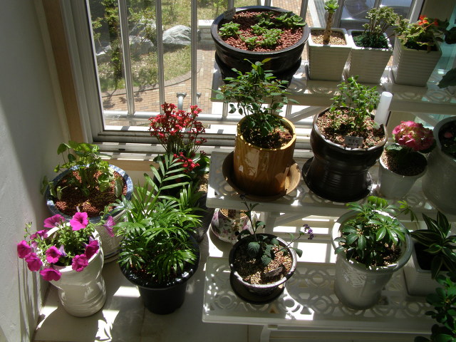 테이블 야자, 싱고니움, 님들 사진보고 부러워서 장만한 카랑코에, 미니장미, 홍콩야자, 보라꽃이 매력적인지 몰랐는데 꽃사님 사진 찍어놓은 거보고 사기 잘했다고 생각했던 헬리, 홍콩야자 수국 등