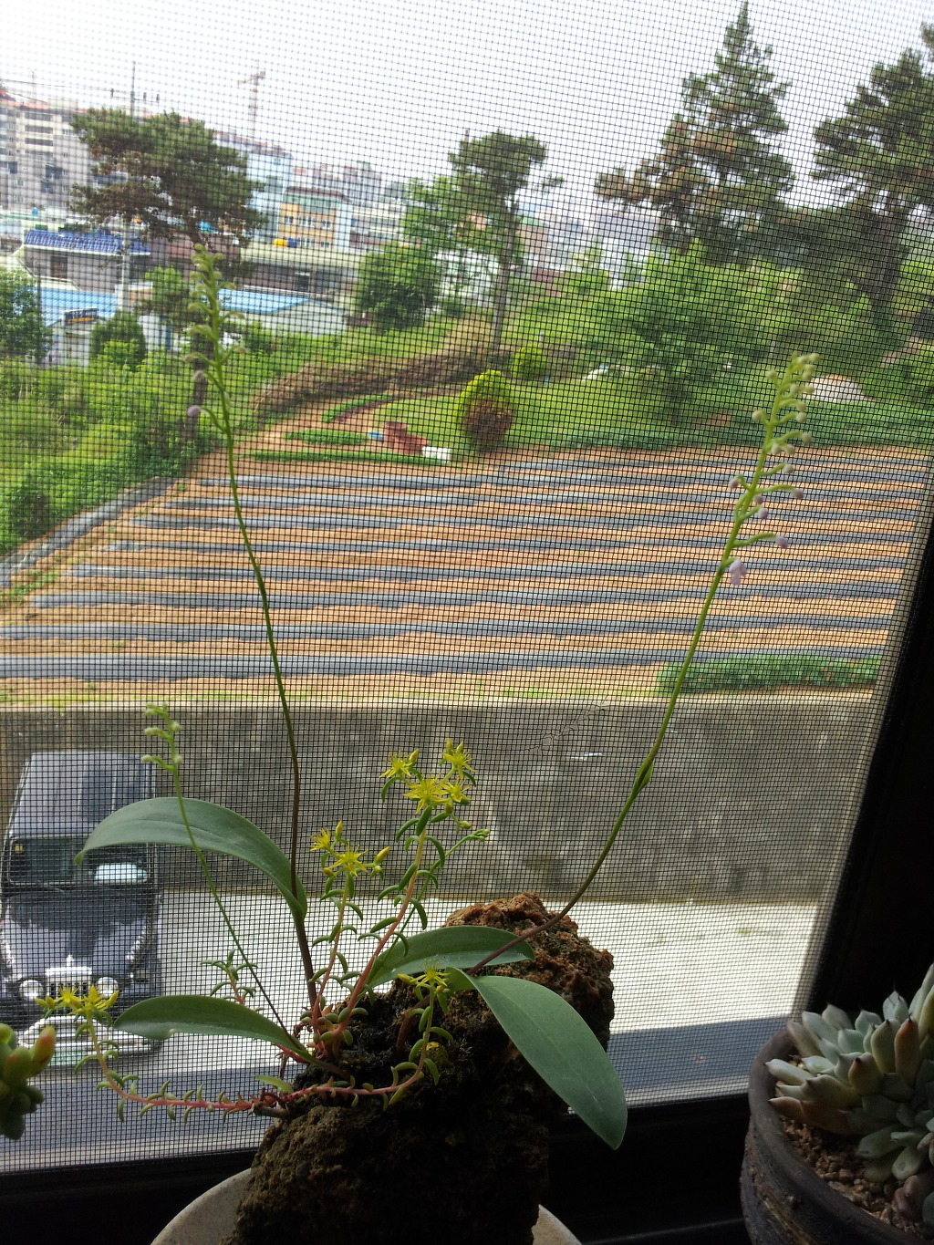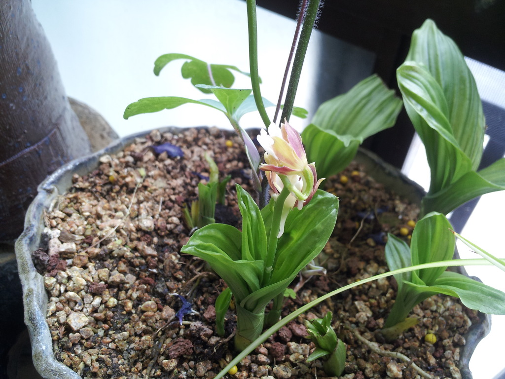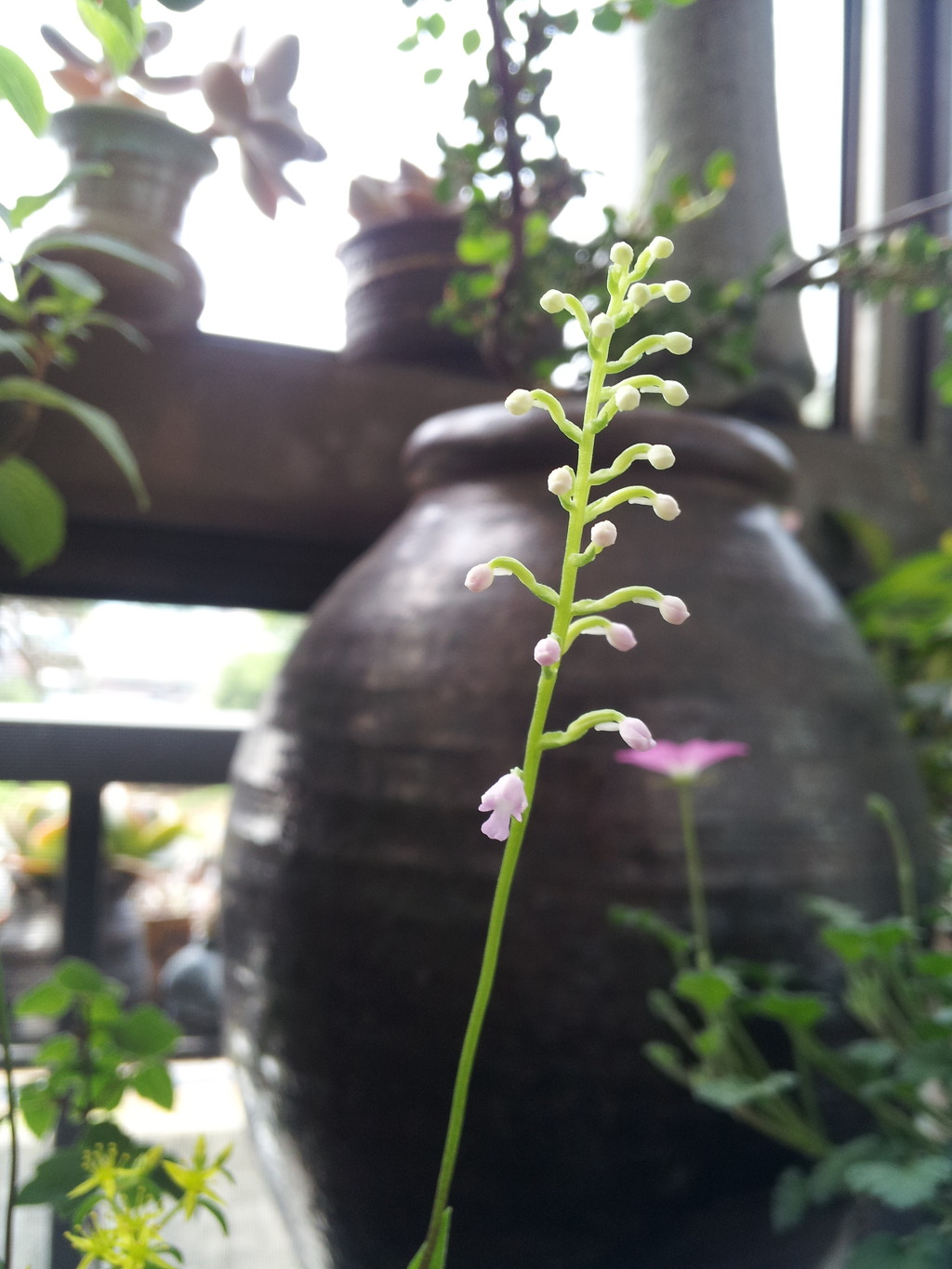 한꺼번에 많이 안피어서 주인장 애간장을 녹이는 녀석들..^^핸드폰으로 찍어서 올리니까 화질이 영..그래도 이쁘게 봐주세요. 분홍백화등, 병아리난 ,꽃필준비중인 산수국 ,용쓰고 았는새우란, 제 닉네임 바위떡풀...