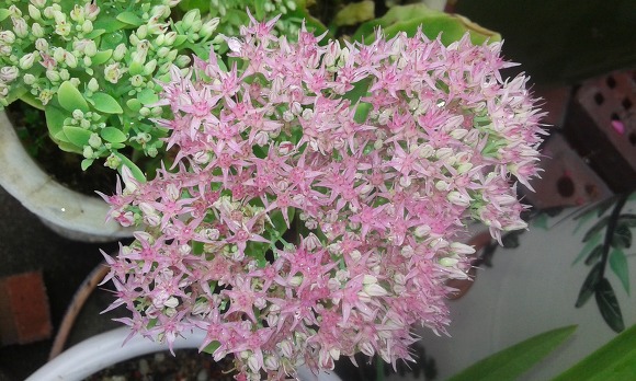 화초 끝에 조그맣고 아주 귀여운 핑크색 꽃이 핀답니다