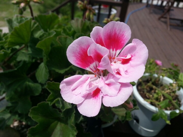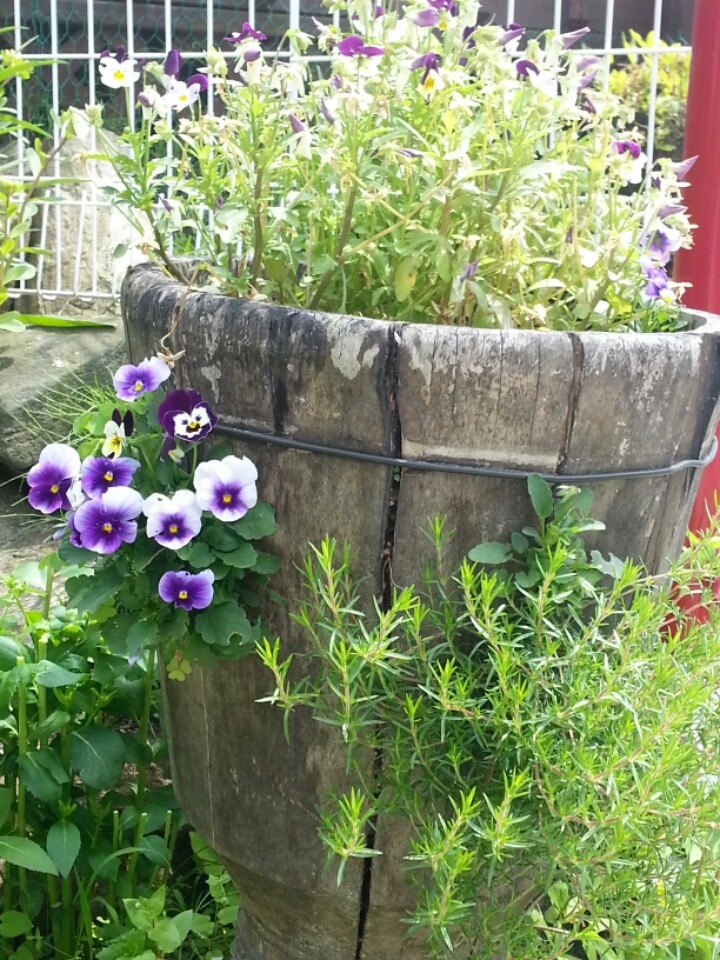 나무 화분 갈라진 틈으로 팬지씨앗이 발아 꽃까지~~깜짝 선물~~