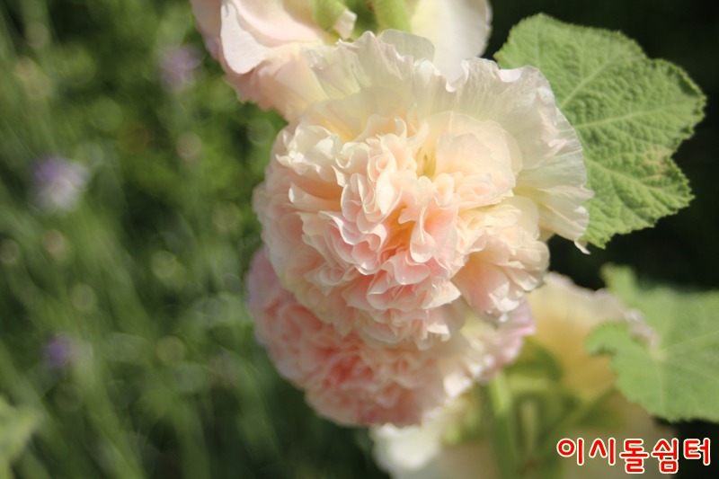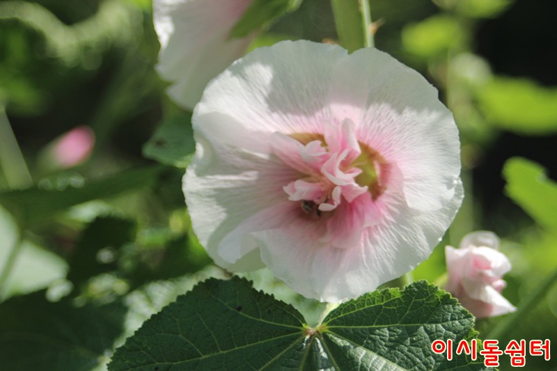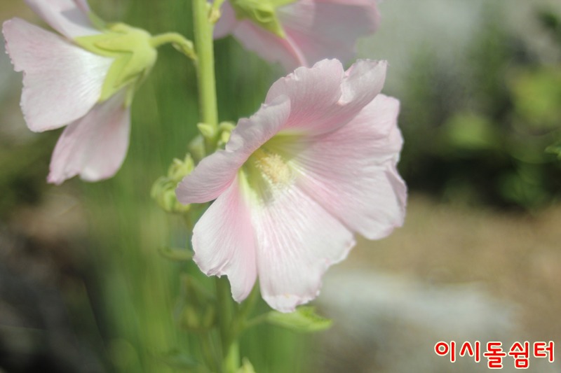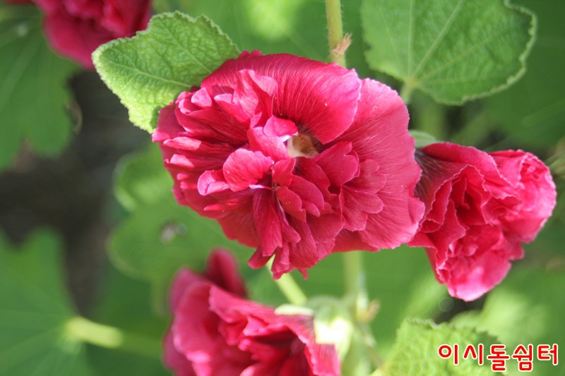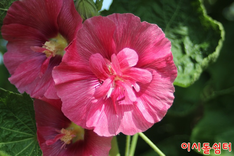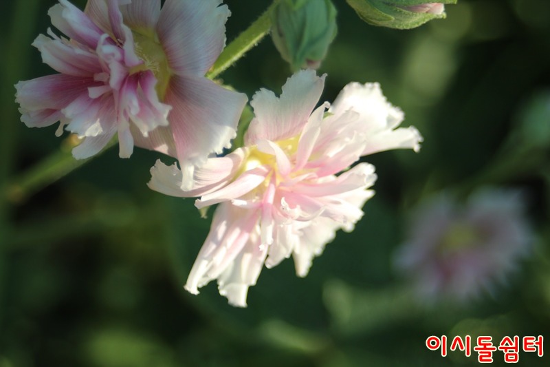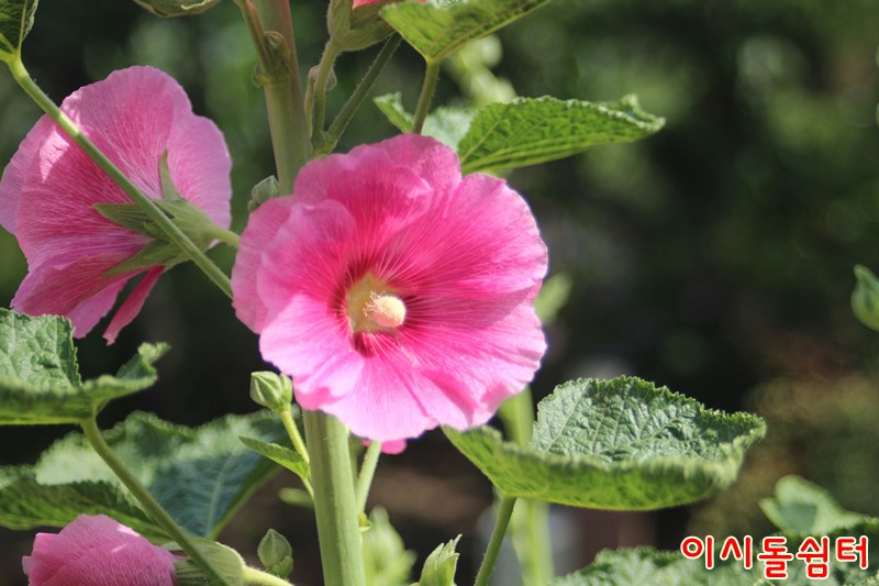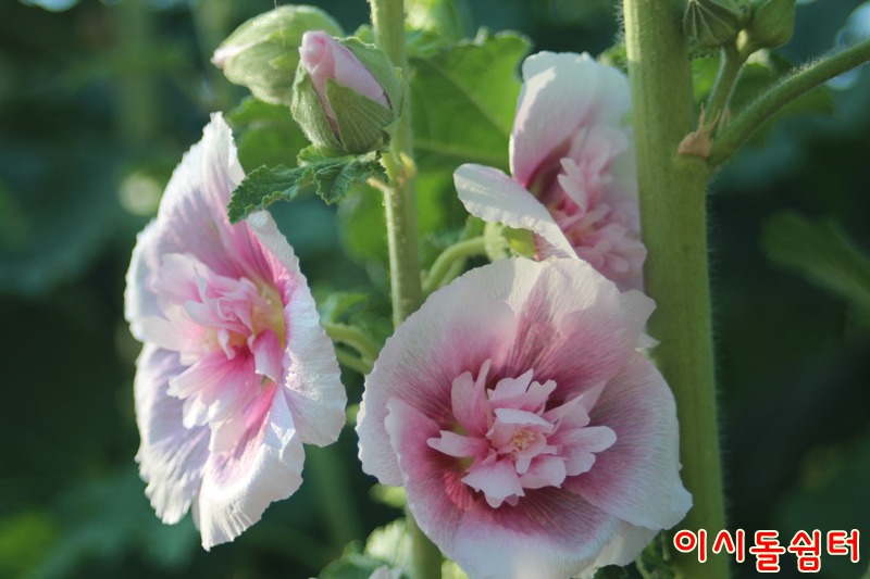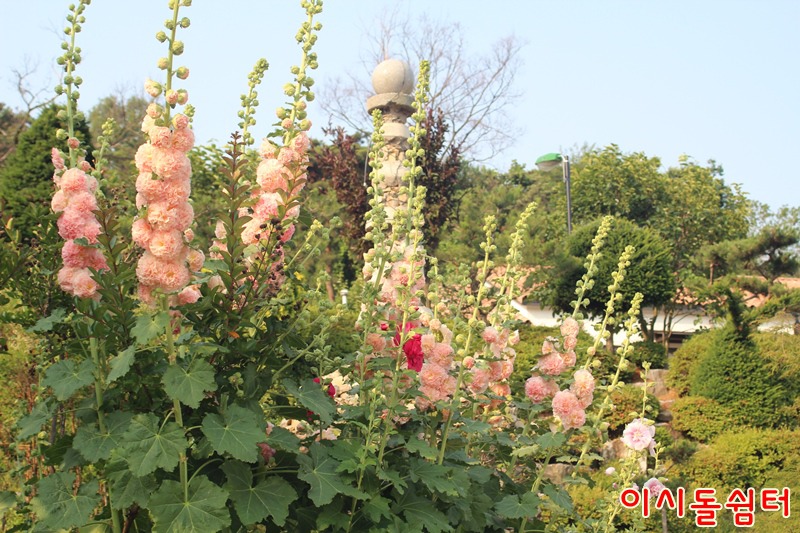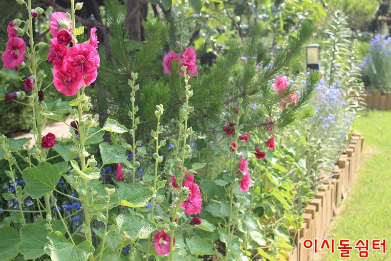 장마철 더운 날씨에 영인산자연휴양림 이시돌쉼터에 여러종류의 접시꽃이 피어 방문한 손님들의 마음을 풍요롭게합니다(,18.6.29)