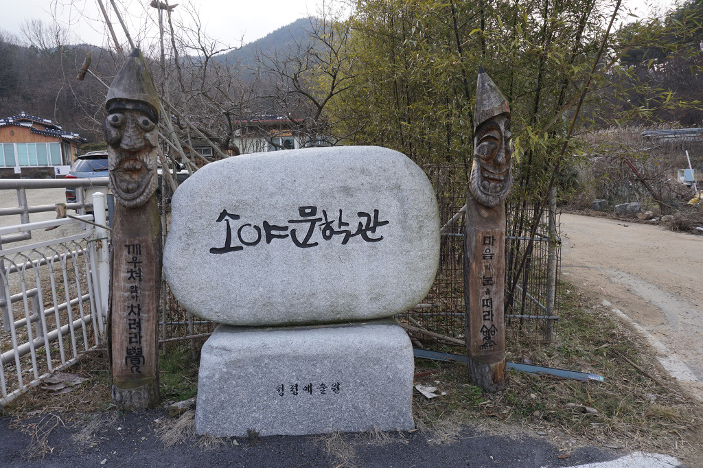 고즈넉한 산아래 마을에 소야문학관 이란 돌간판이 보이고 어울리지 않게도 장승도 서 있다. 유랑자