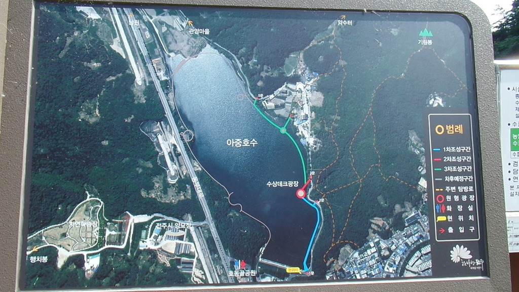 전주 아중호수는 전주시가 명소화 사업을 수년간 추진한 결과, 탐방로와 테마공원이 조성됐고 수려
