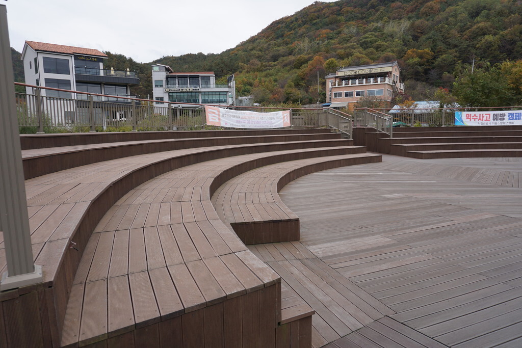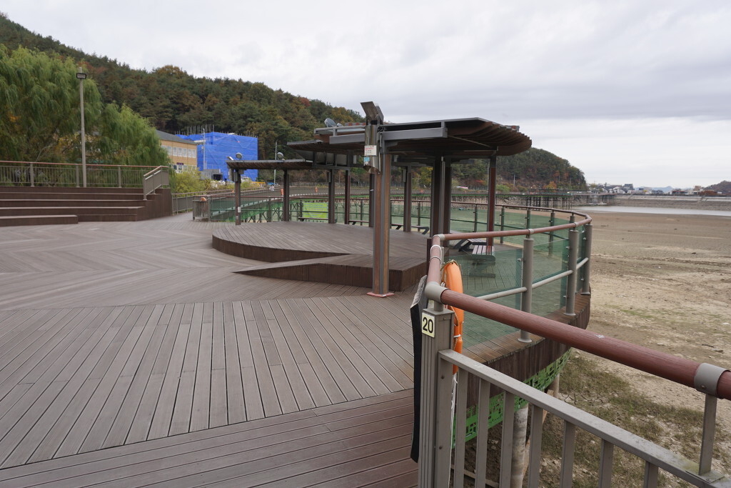 수변산책로를 걷다보면 중간쯤 넓은 공간의 쉼터가 나온다. 주말이면 야간 버스킹이 이루어지는 무