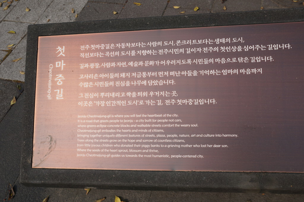 그간 유동인구가 적고 수많은 자동차만 지나쳐가던 전주역 앞 큰 대로에 첫마중길 이라는 아름다운 길이 들어 섬으