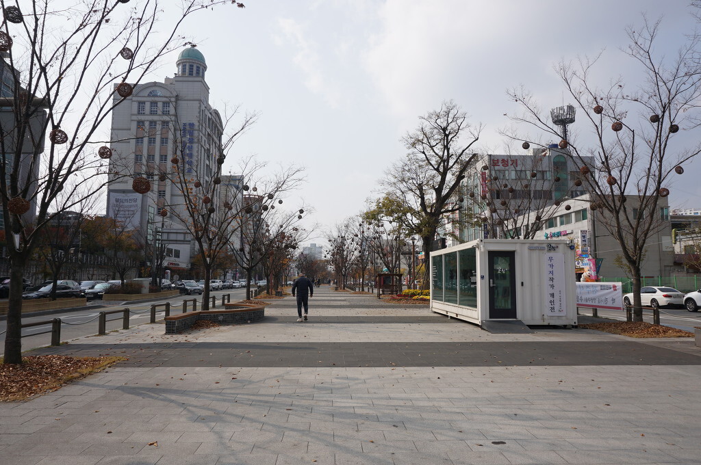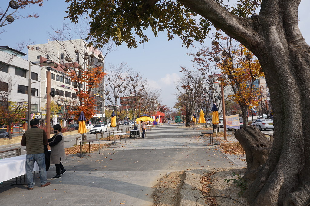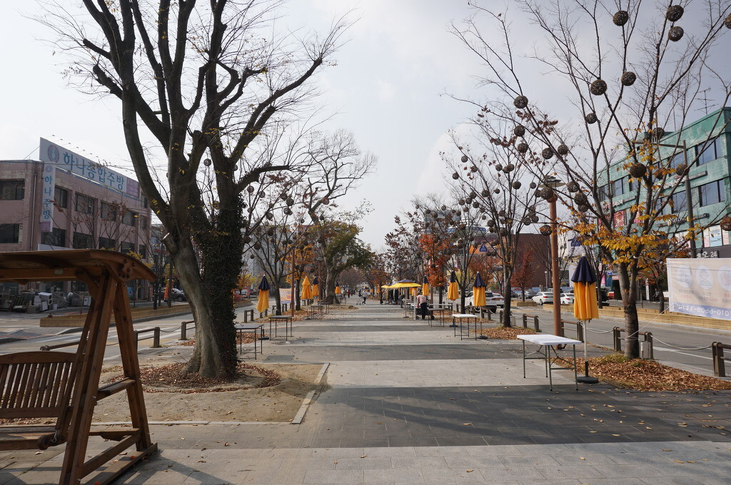 소하는 대신 도로 중앙에 15~20m의 보행광장을 만들어 분수대와 벤치, 파고라, 느티나무 230주와 이팝나무 170여