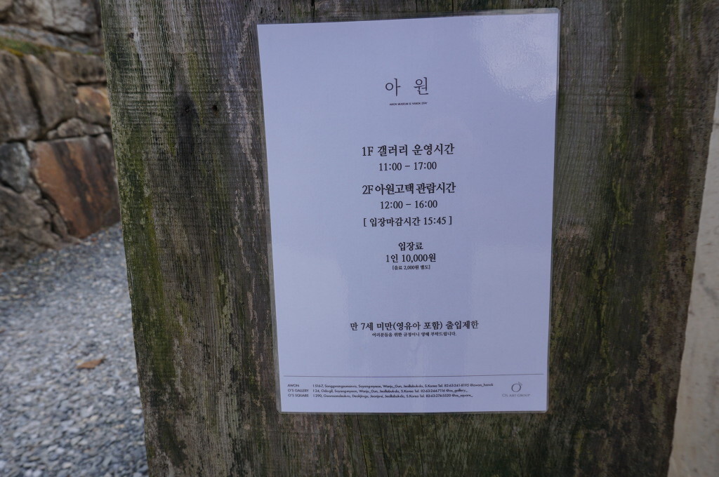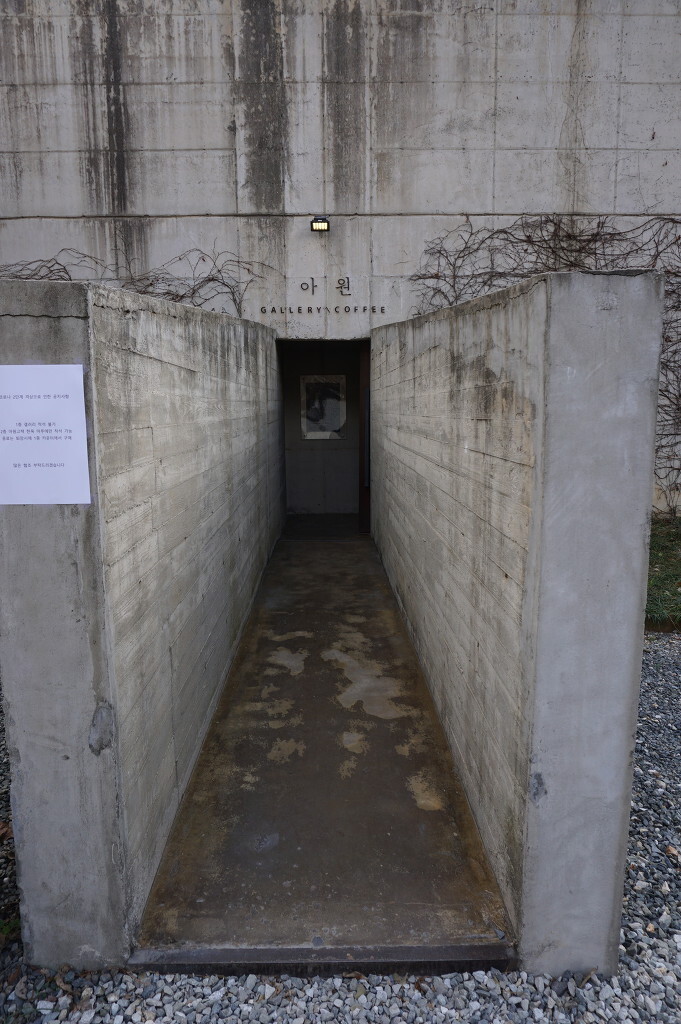 입구는 노출 콘크리트 건물로 되어 있는데 아원고택을 들러 가려면 1층의 아원 갤러리에서 입장권 개인당 10.000원