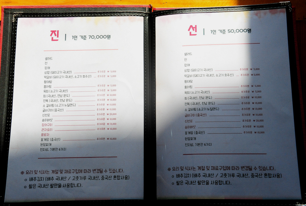 니는 모든 식재료가 포함하는 것이다. 수라상에만 올랐다는 구절판과 신선로부터 전복 등 산해진미의 한정식을 맛