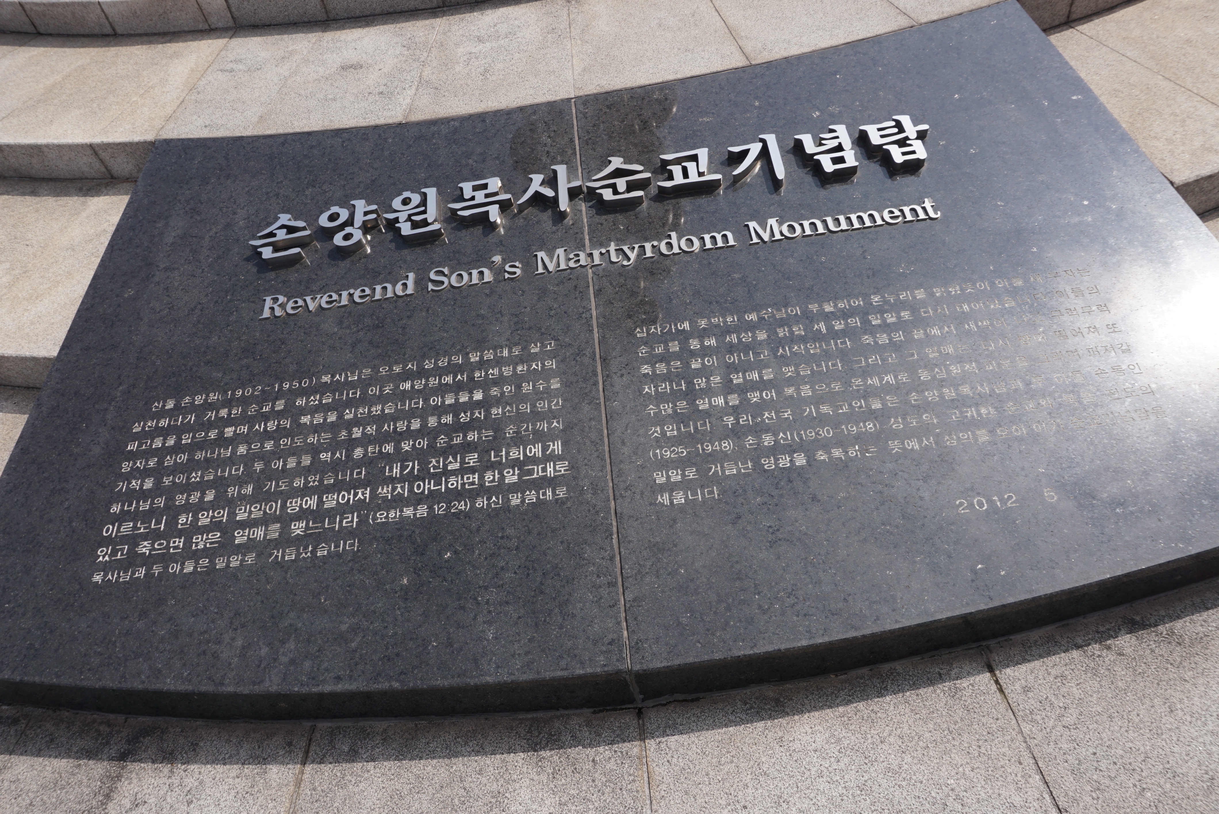 2004년. 문화관광부와 한국관광공사가 발표한 손양원 목사 유적지 테마파크 개발구상에 따라 손목사 순교기념