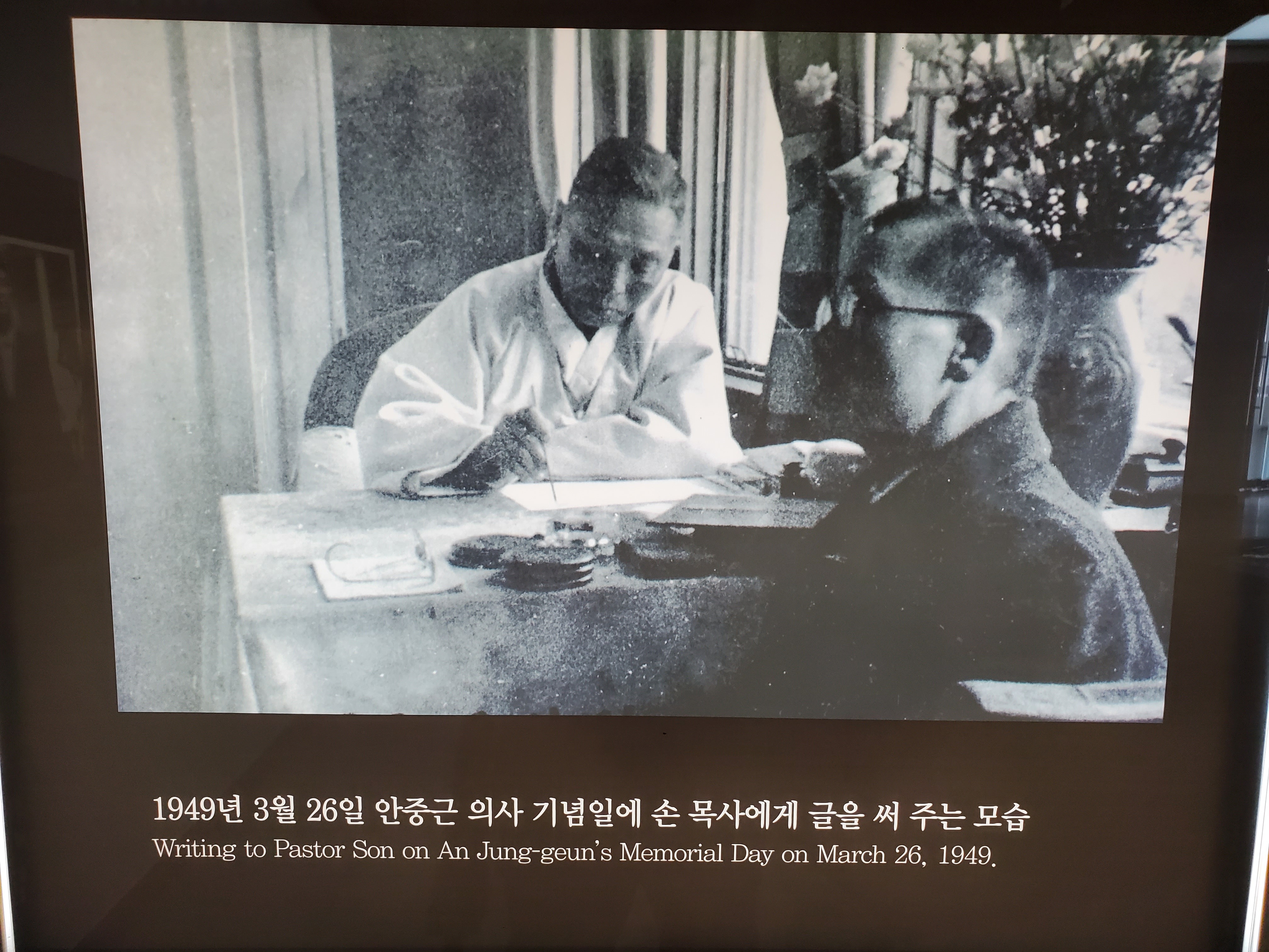 김구의 제안을 정중히 거절했고 이에 다시 한 번 감명을 받은 김구는 손 목사에게 친필 휘호를 적어