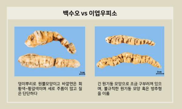 백수오와 하수오는 전혀 다른 식물로 성분과 약성이 완전히 다릅니다.