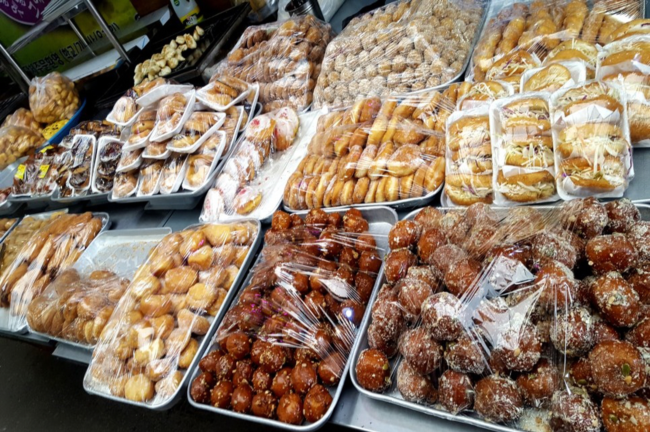 니 뭐니 해도 어른들에게 재래시장은 먹거리로 구미가 당긴다. 기름 냄새 솔솔 풍기는 해물전도 닭강정도 뜨끈