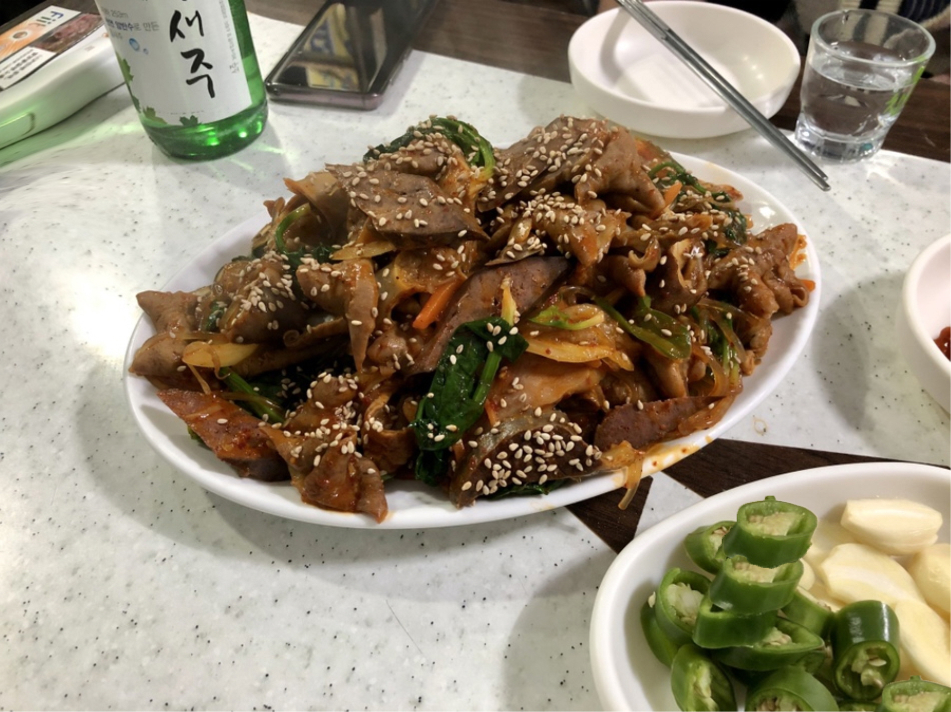 어디 그 뿐이랴 덕양 곱창전골과 돼지머리고기, 족발, 등갈비, 여수의 싱싱한 새우, 문어, 관자 등 풍성한 해산물