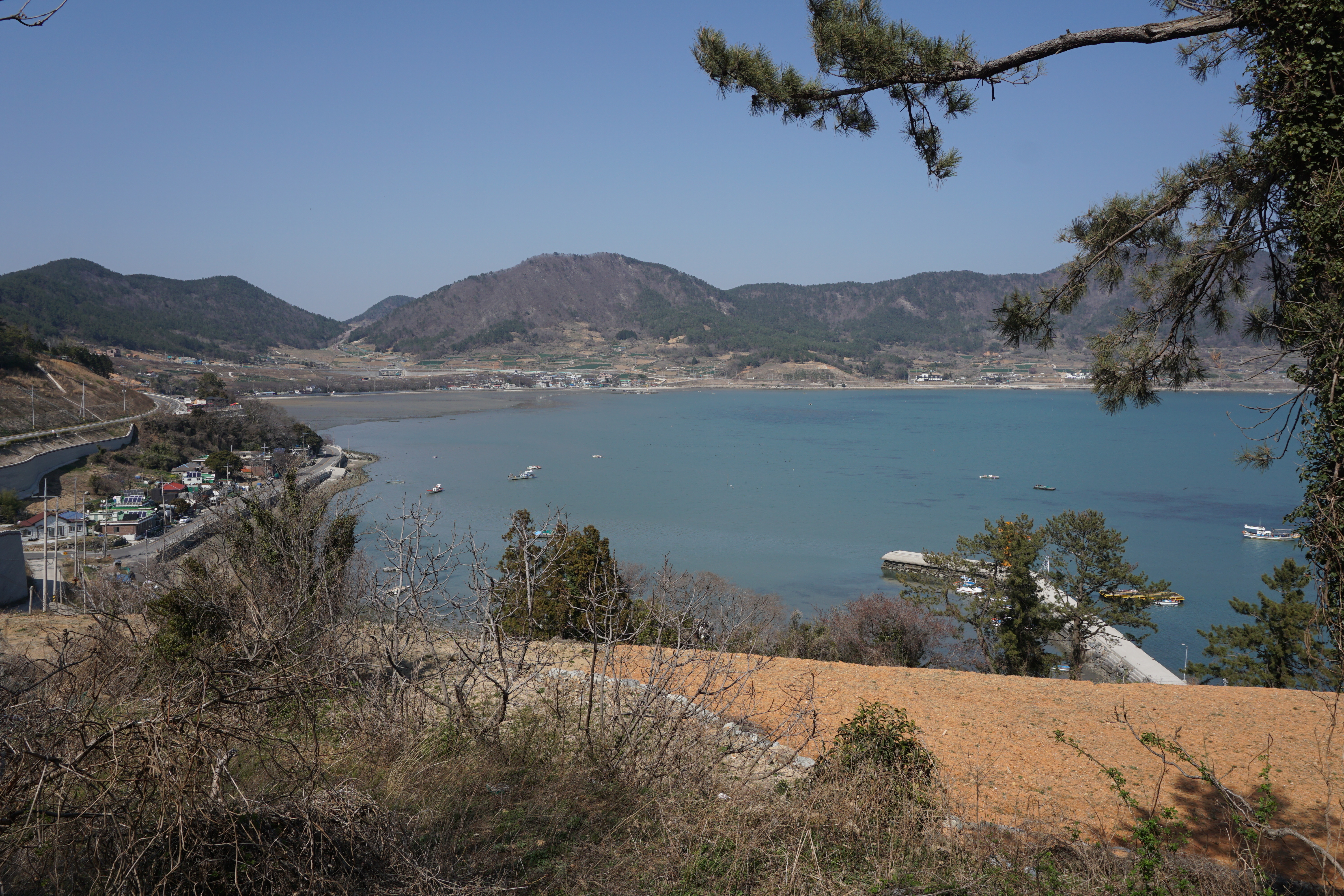 하는수 없이 발길을 돌려 산길을 찾아 마을 전경만을 바라본다. 드넓은 ‘여자만(汝自灣)’의 푸른 바다와 조발도