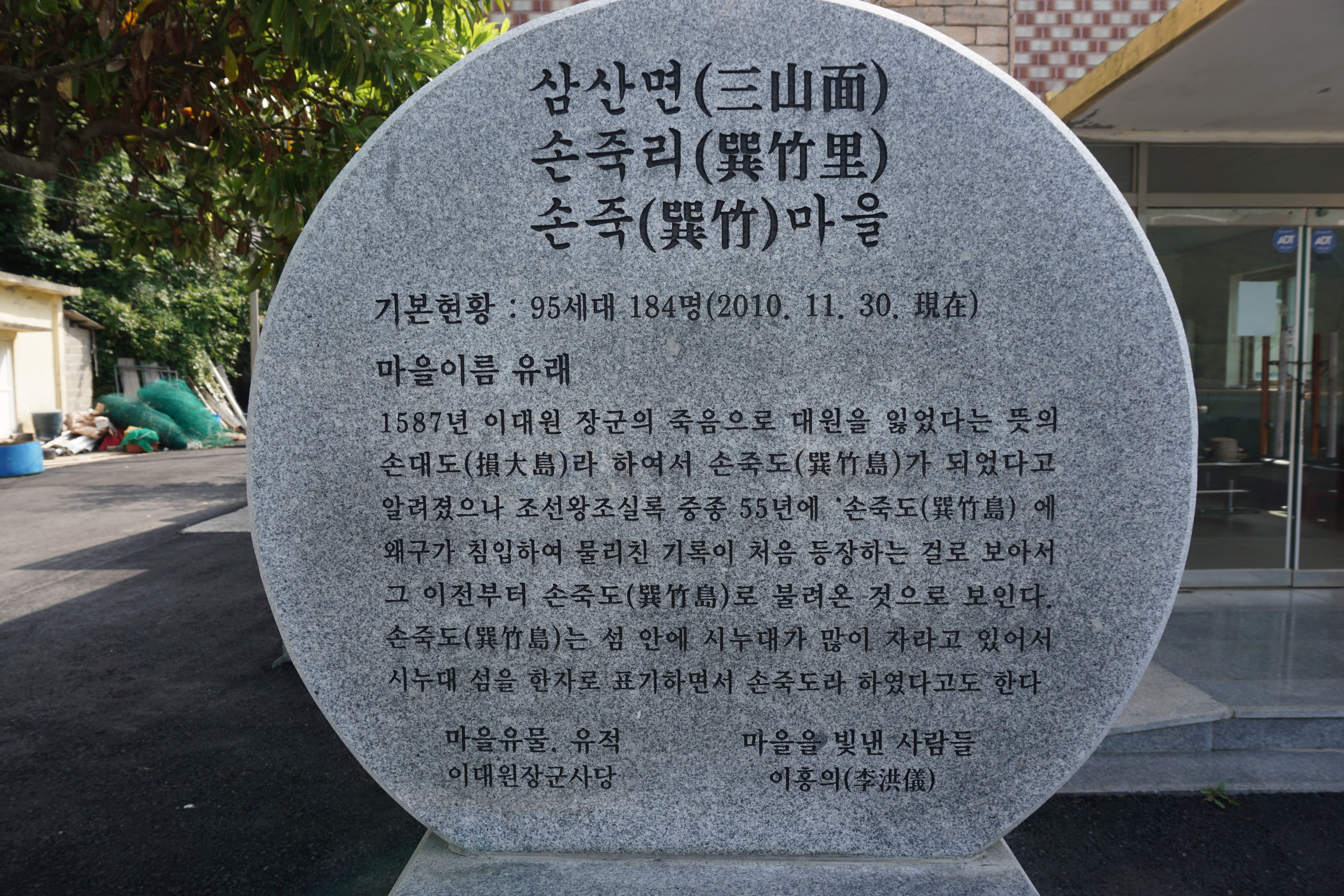 좌수사로 부임하면서 이대원 장군이라는 큰 인물을 잃은 곳이라 하여 손대도(잃을 손, 큰 대)라 불려왔다고 한다.