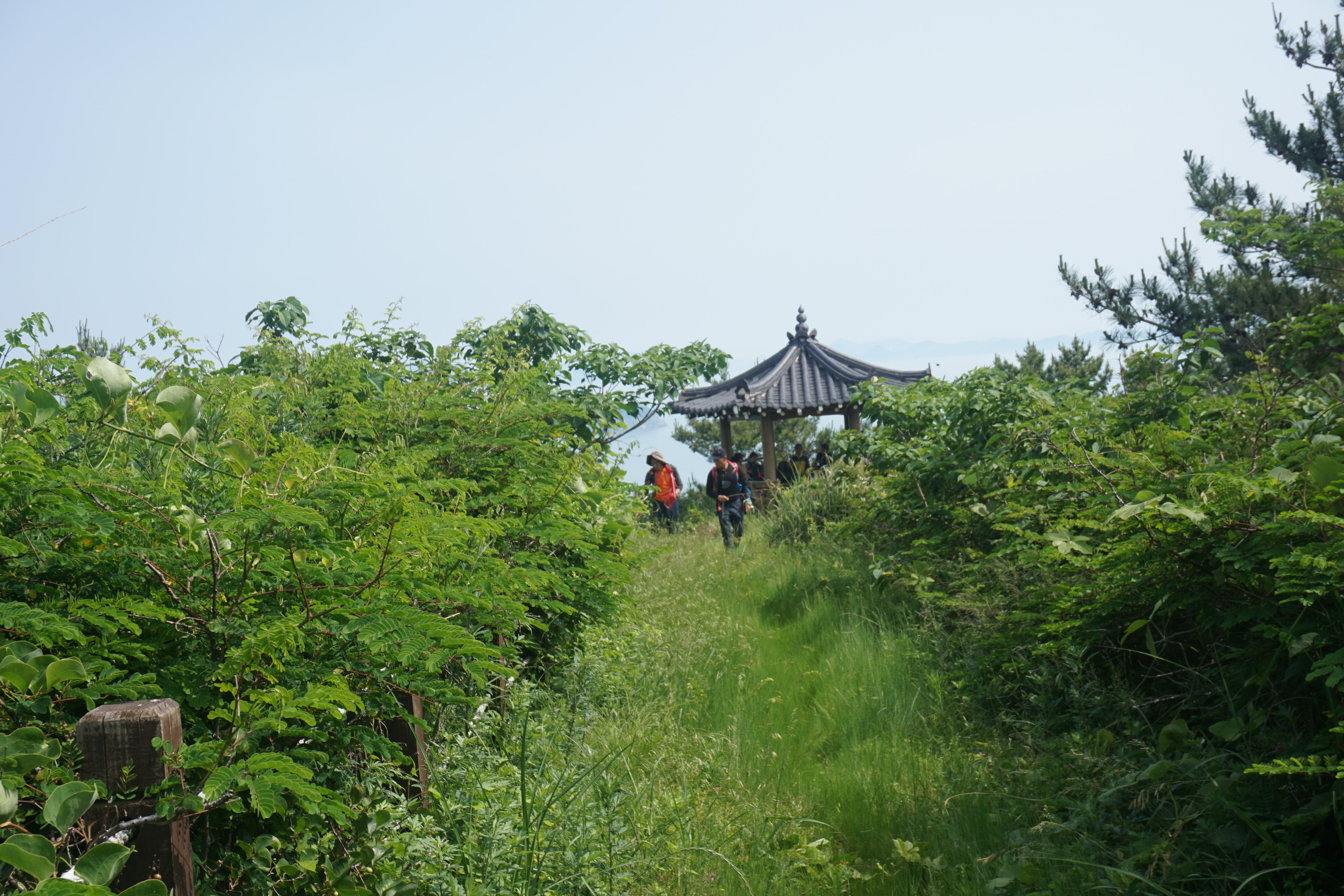 *능선을 내려서자 너른 사거리에 정자가 있는 지짐이재다. 매년 봄이면 주민들이 꽃으로 전을 부쳐 먹는다는 화전(花煎)놀이 마당이다.