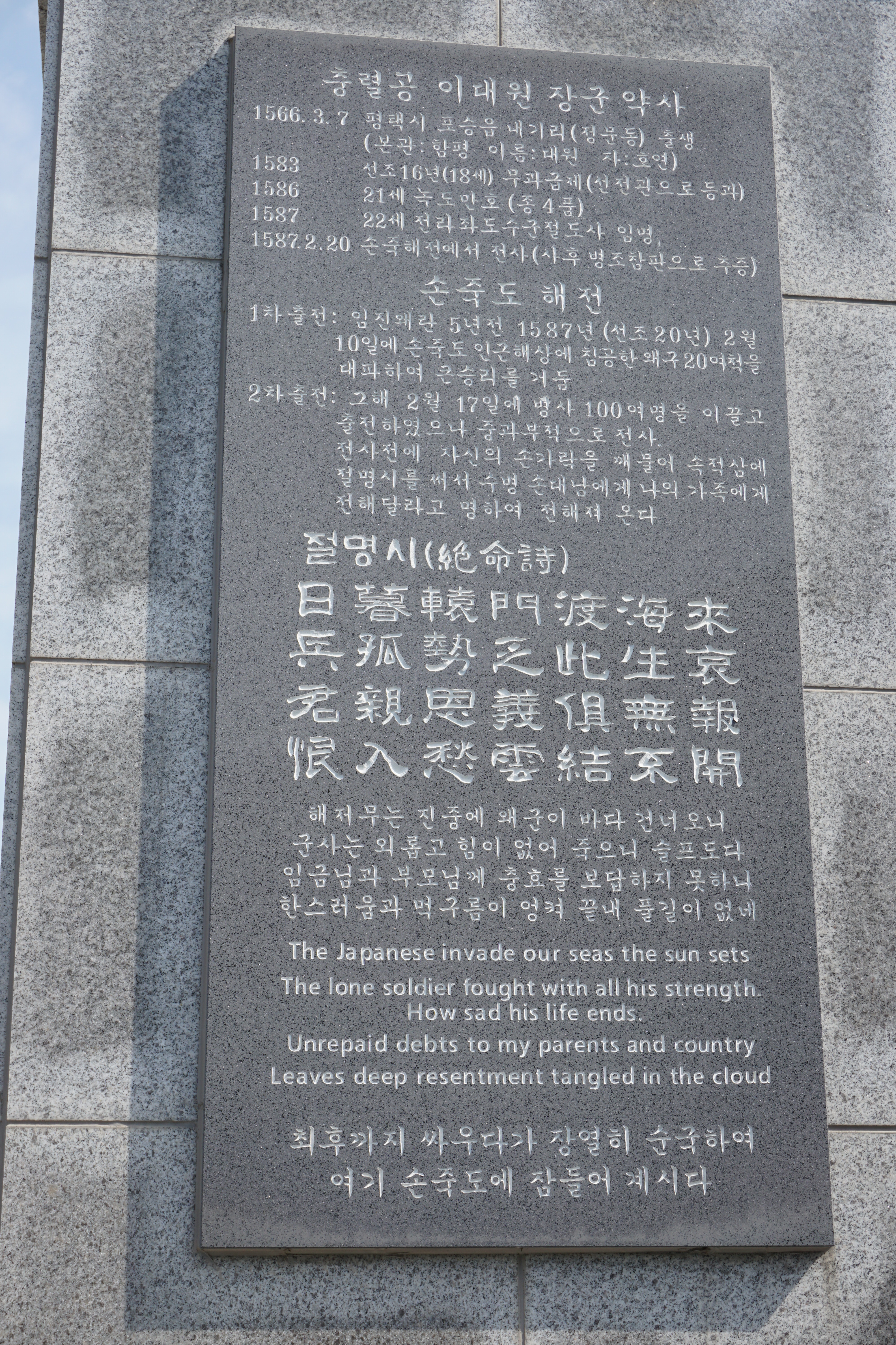 端只與國爲忠臣 船入海洋兮 虜進主將退 百萬陣中空張拳).“아, 슬프다/ 녹도 만호 이대원 장군/ 오직 나라 위한
