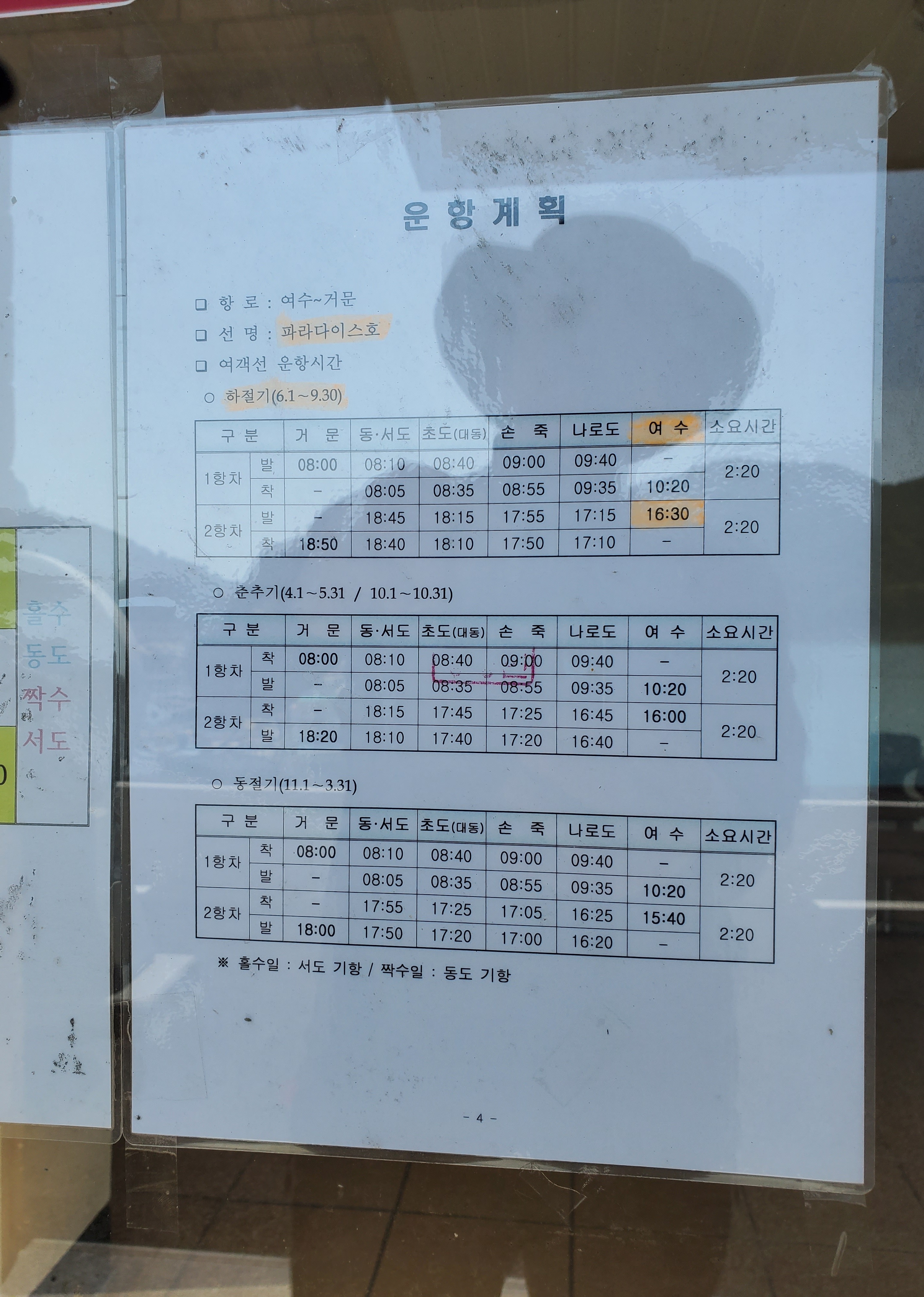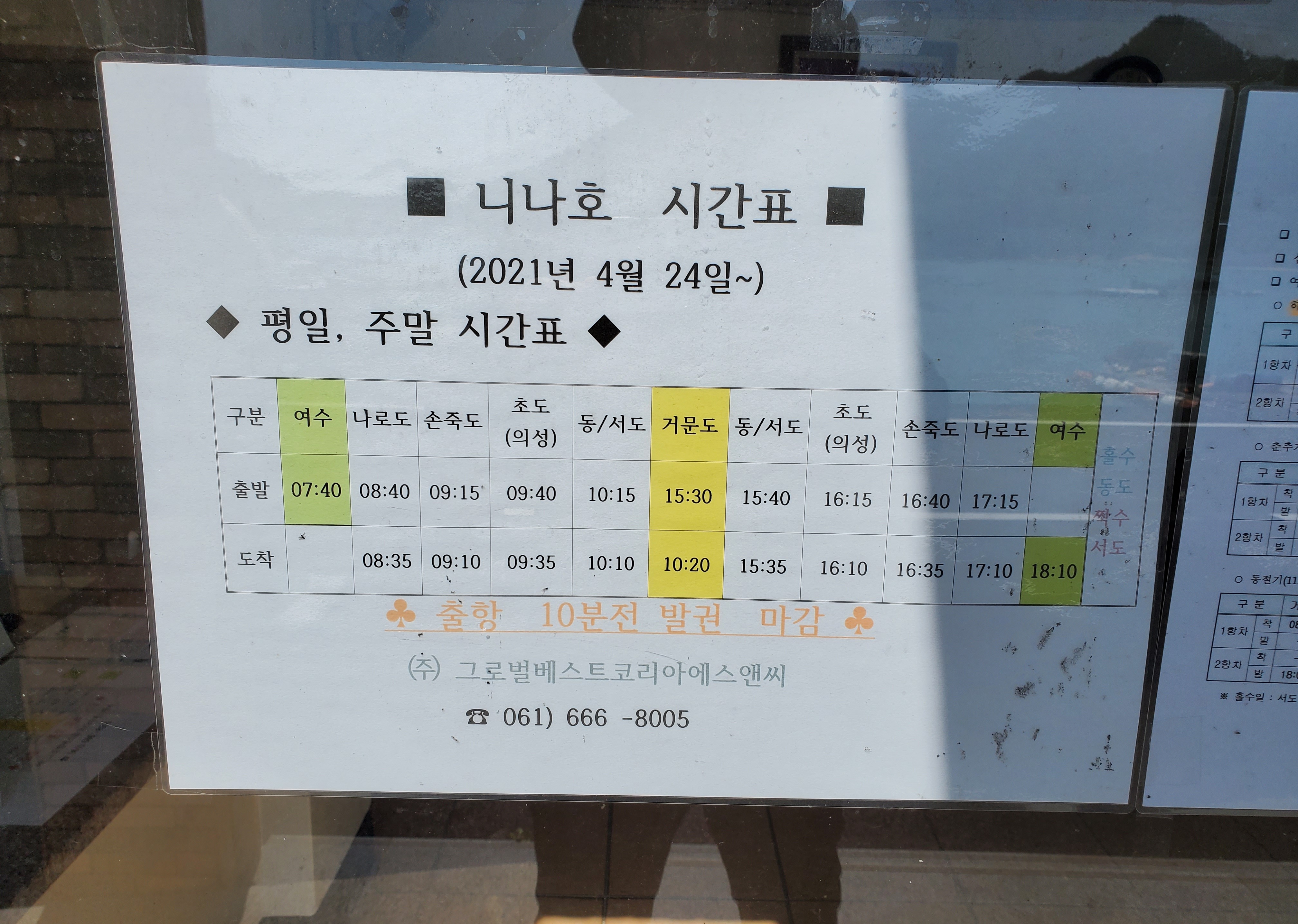 지 갔다가 거기에서 배를 타면 30여분, 훨씬 쉬게 손죽도 입도가 가능하다, 여수항에서는 오전, 오후 한 번씩 배