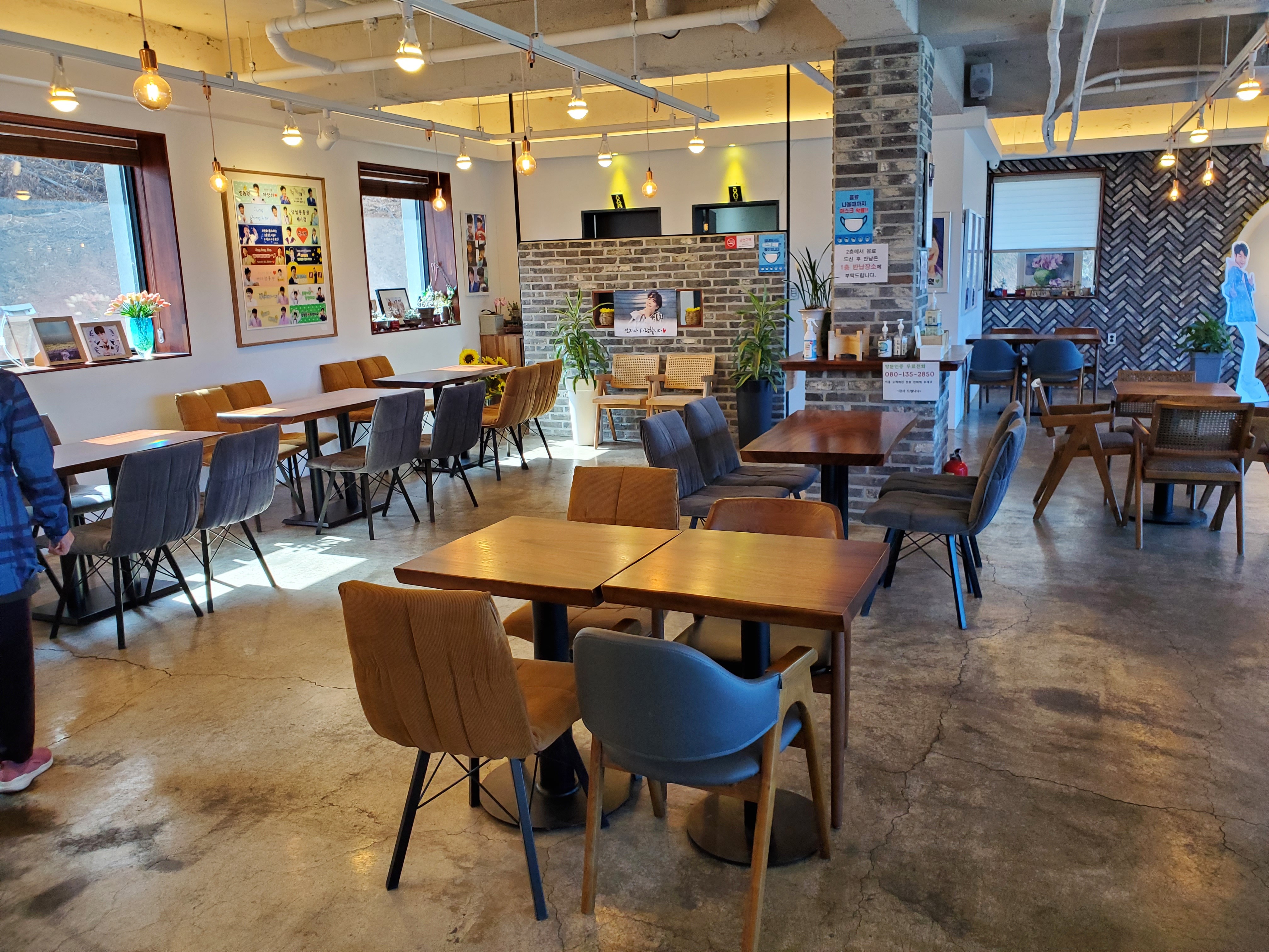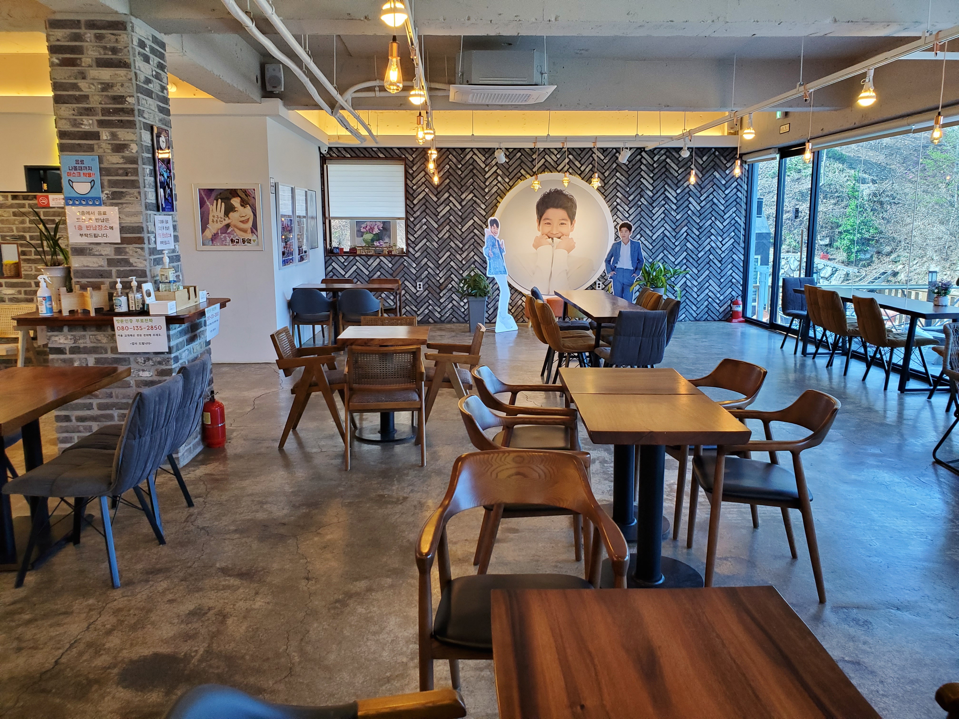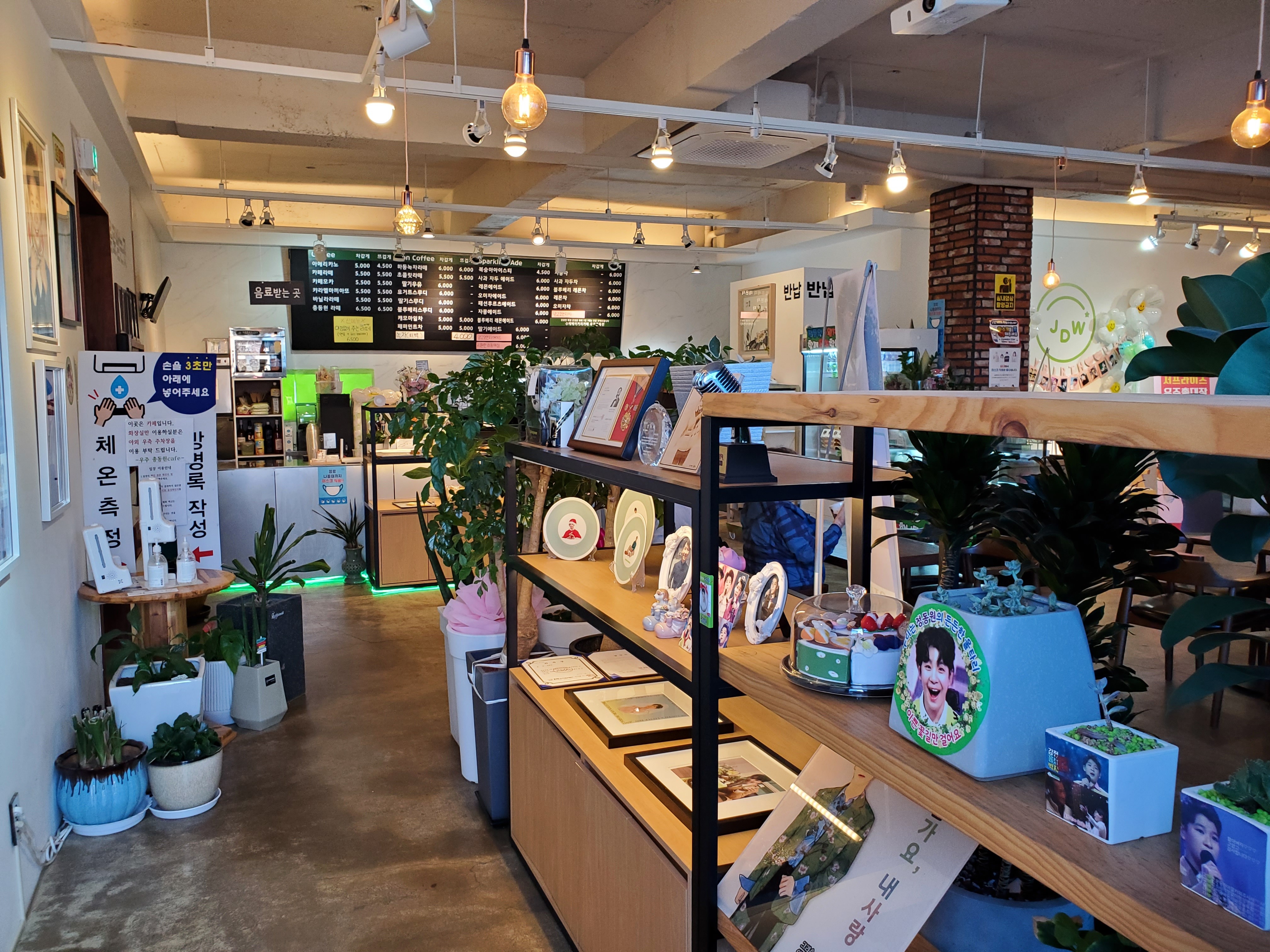 이찬원 화환부터 임영웅, 장민호등등 사인까지……. 깔끔한 인테리어가 눈에 띄는 카페에는 곳곳에 정동원, 그리