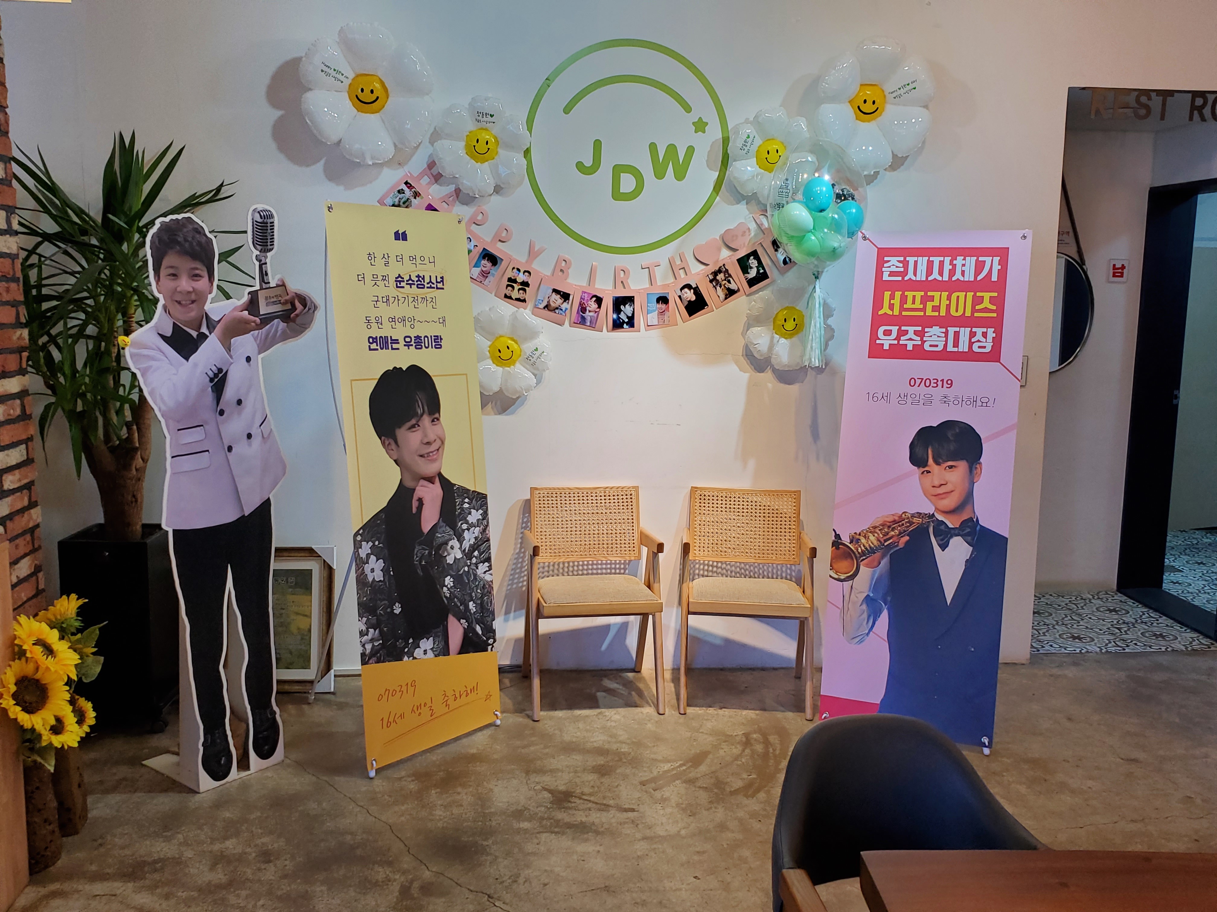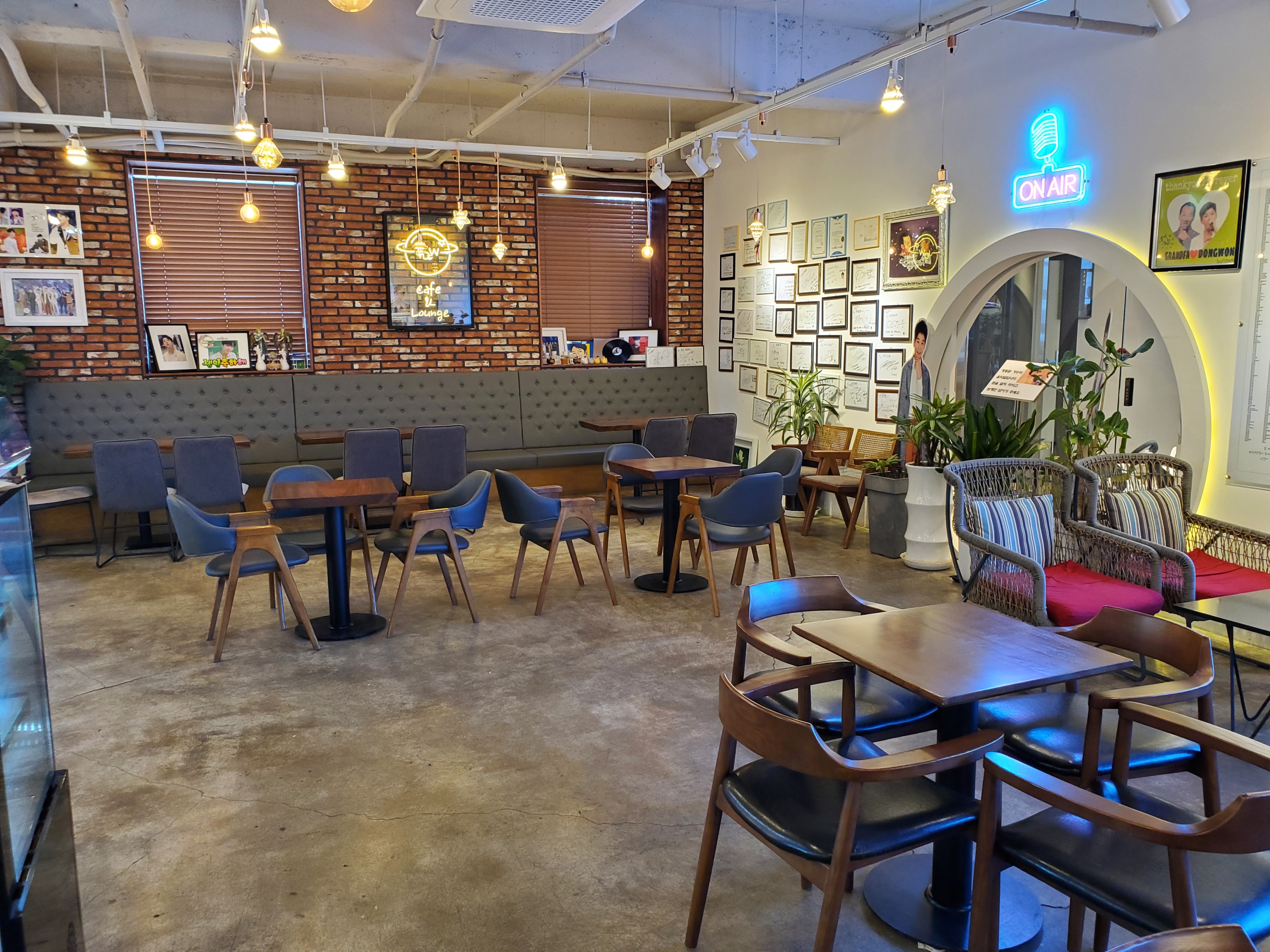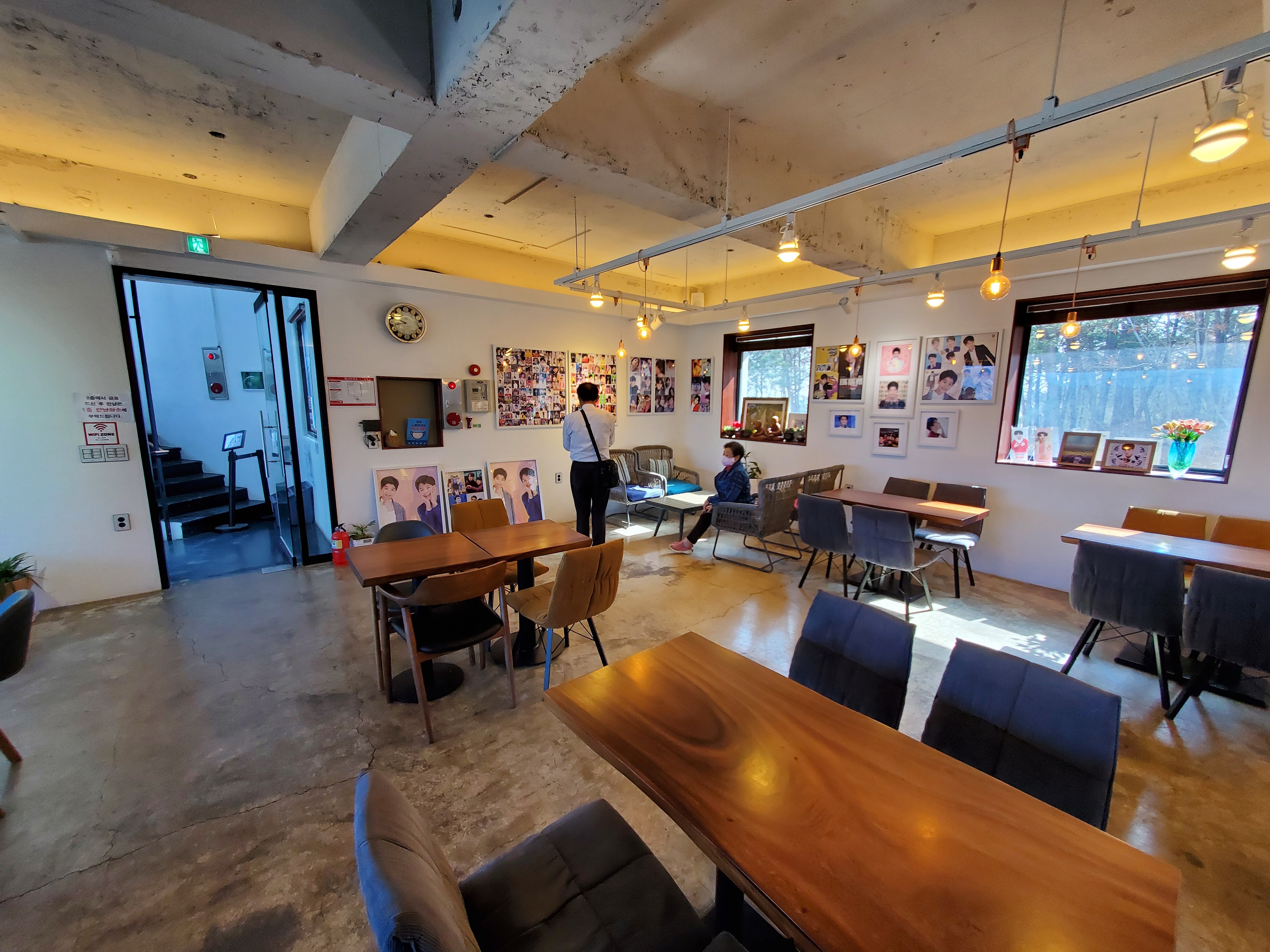 이찬원 화환부터 임영웅, 장민호등등 사인까지……. 깔끔한 인테리어가 눈에 띄는 카페에는 곳곳에 정동원, 그리