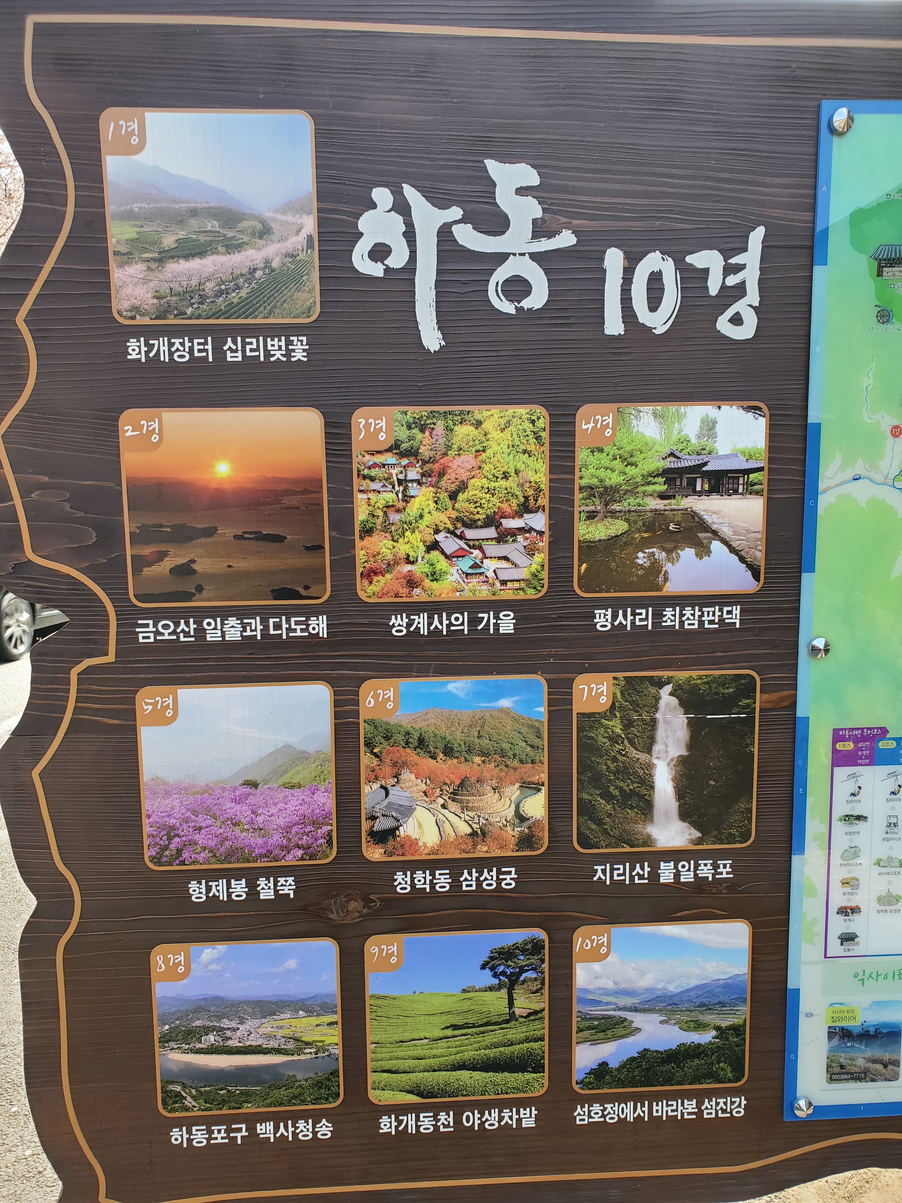 은 '하동 8경'은 하동이 '색깔 있는 고장'이라 불리는 까닭을 잘 보여준다. 본시 하동하면 화개장터 십리벚꽃/