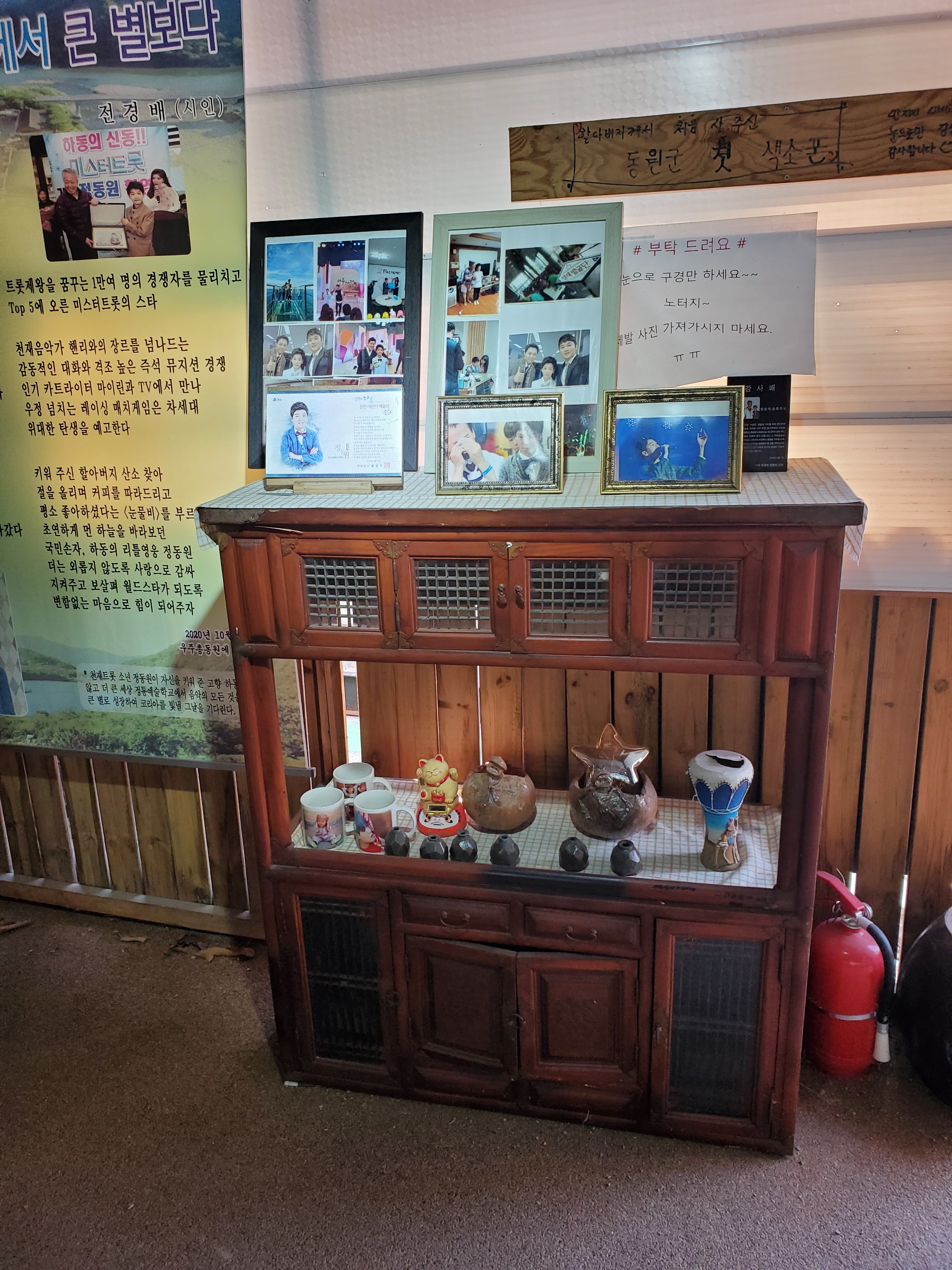 에는 정동원 실물 크기의 等身大[등신대]가 곳곳에 놓여 있는것으로 보아 이곳을 방문하는 관광객들을 위해 기