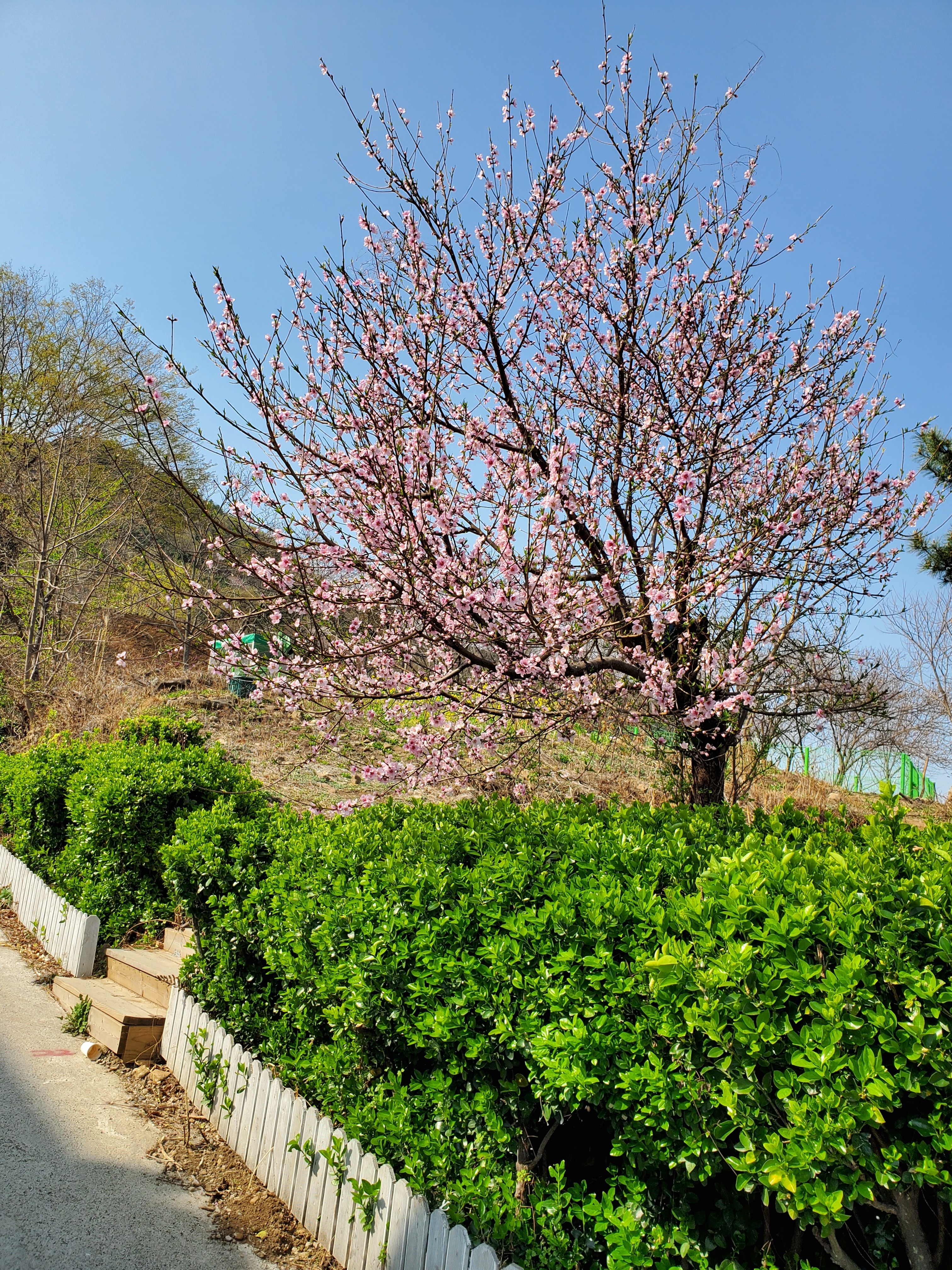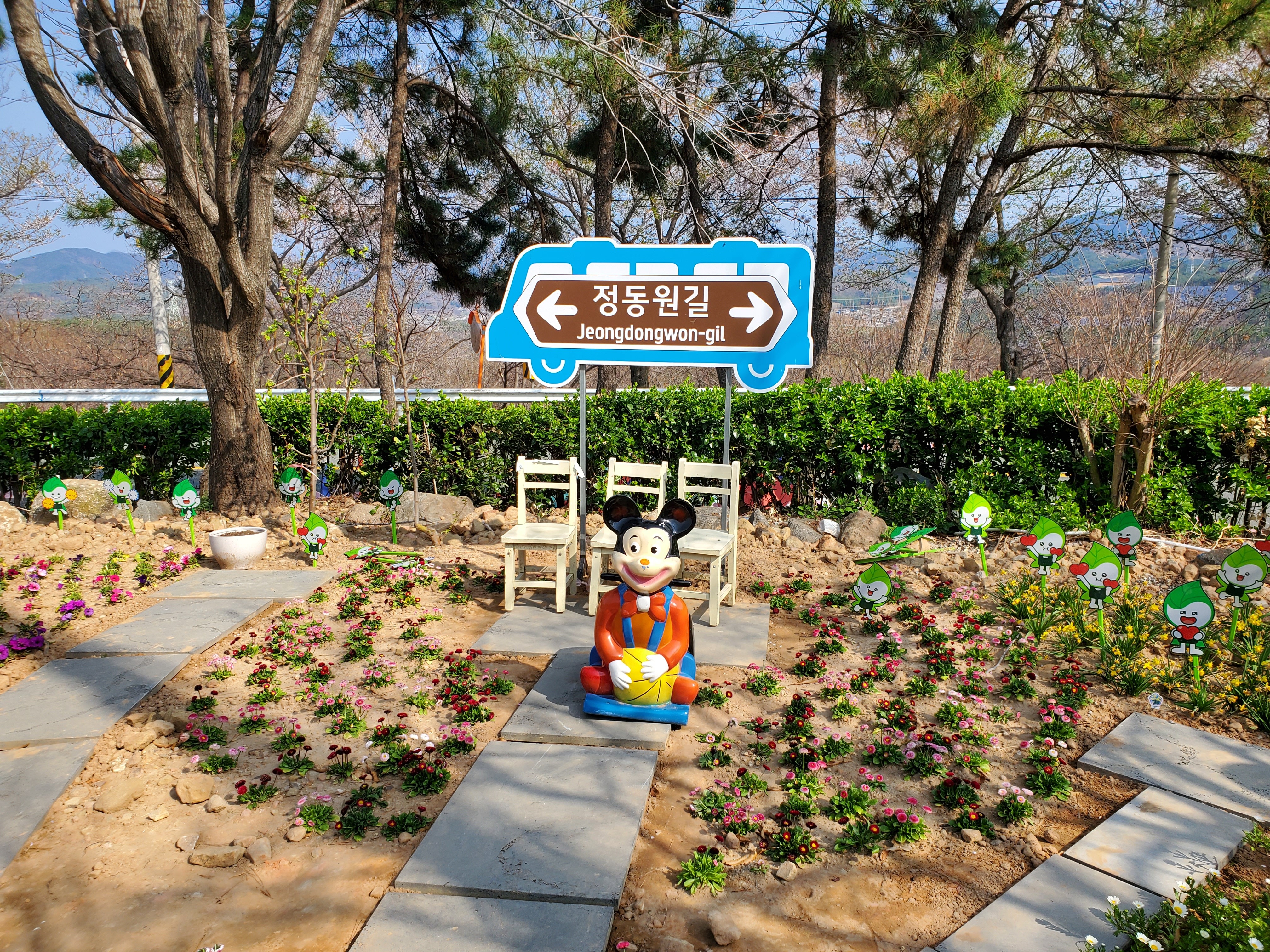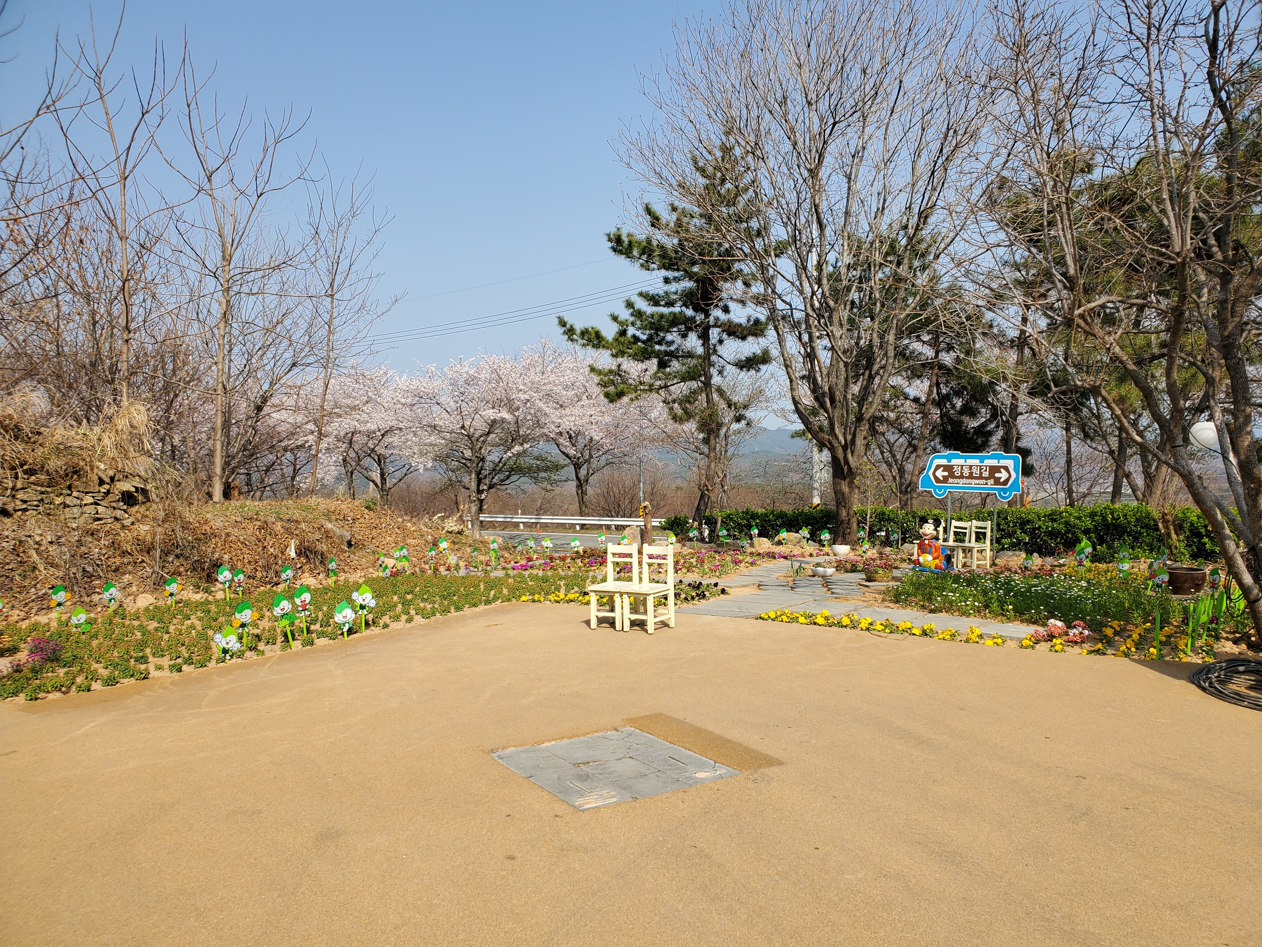 날린다. 전형적인 봄 꽃 길이다. 굽이굽이길을 돌아 달려간 곳 도로에는 핑크색으로 된 ‘정동원길’이라는 표시
